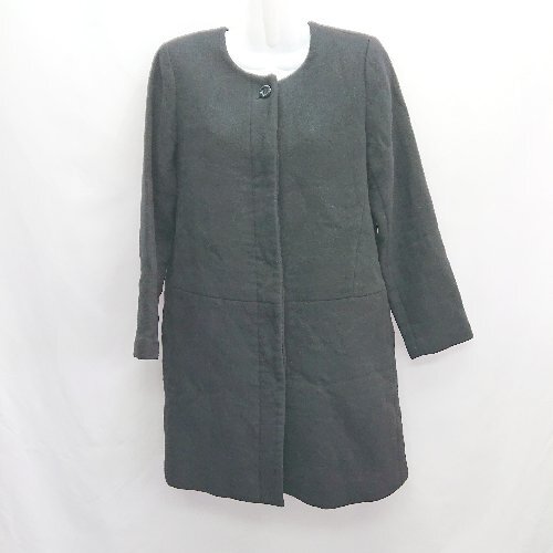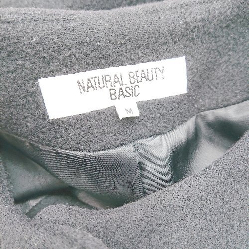 ◇ Natural beauty beast ナチュラルビューティーベーシック 厚手 隠しボタン 長袖 コート サイズM ブラック レディース E