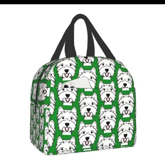 □大容量!!ウエスト・ハイランド・ホワイト・テリア★保冷バッグ☆犬好き★イラスト★緑♪鞄☆お出かけグッズ★新品未使用品★送料無料◇