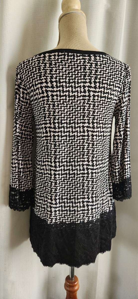 カフス、裾に幅広いケミカルレース飾り