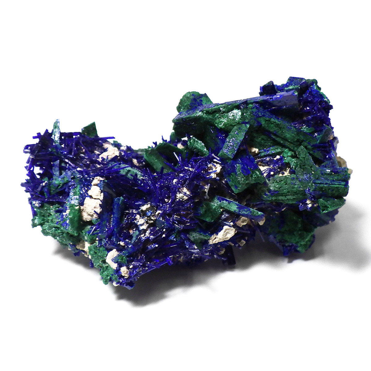 モロッコ産のアズライトwithマラカイト原石です。アズライトに一部マラカイトが共生した原石です。高品質のアズライトのキラキラした結晶とマラカイトの艶やかな光沢が同時に楽しめます。アズロマラカイトとも呼ばれております。アズライトの青色とマラカイトの緑色が混ざり合ったアースカラーの芸術的な美しさを持っています。