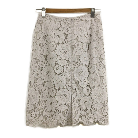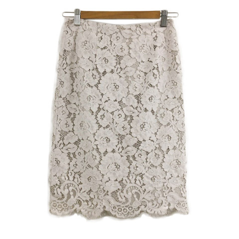 ナチュラルビューティーベーシック NATURAL BEAUTY BASIC スカート タイト 膝丈 総レース 刺繍 スリット S ベージュ グレー レディース