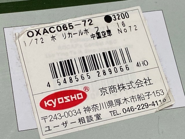 KYOSHO 京商 OXFORD 1/72scale ポリカールポフ I-16 中国空軍 No72 1/72 スケール 展示未使用品