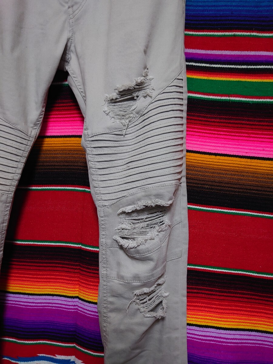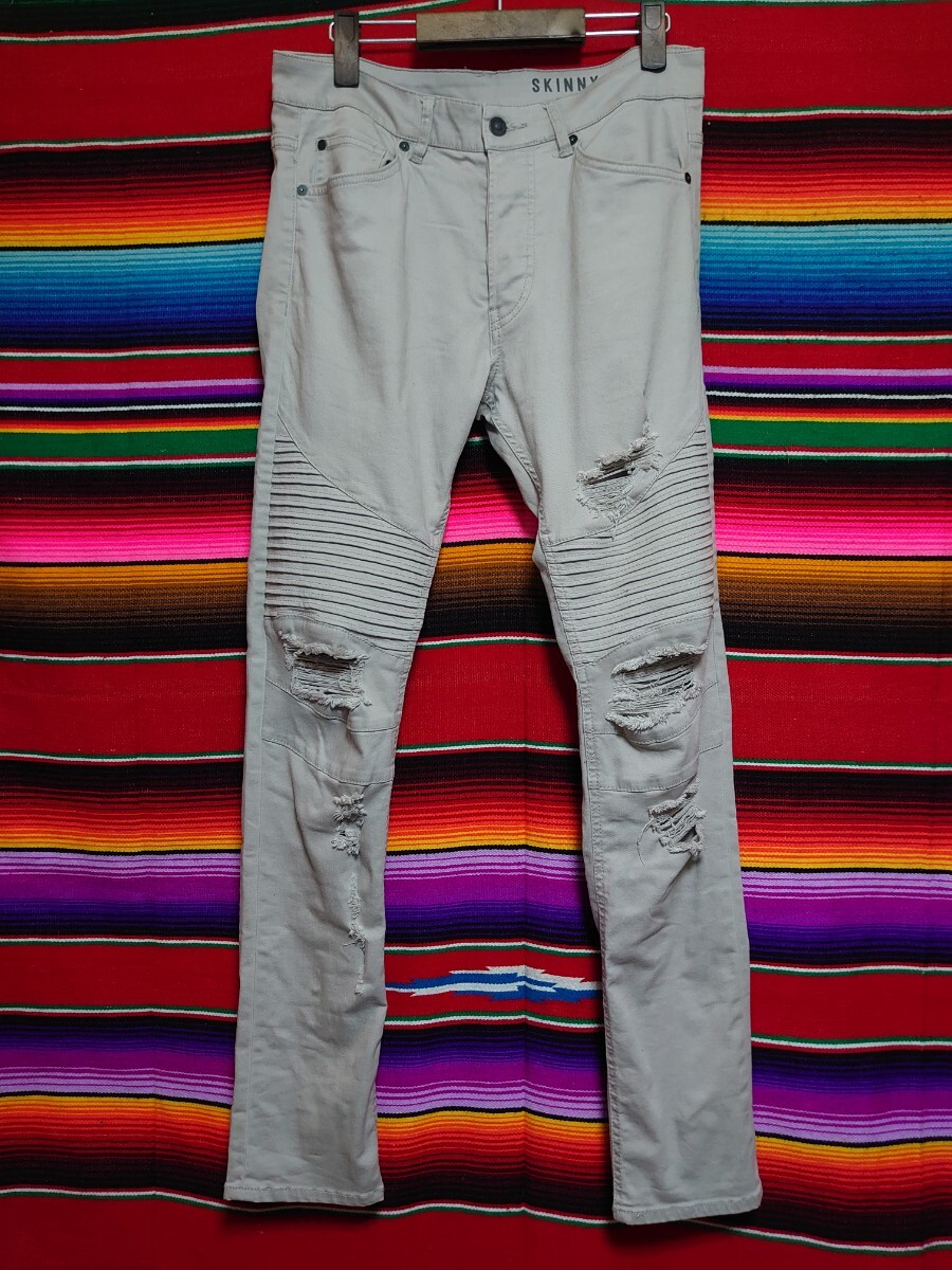 デザインが良いバイカーパンツにクラッシュ加工を施しハードな仕上がりですが品の良いカラーがあっていて気に入って購入しました。