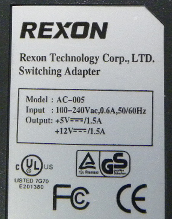 REXON AC-005 +5V1.5A、+12V1.5A ■539