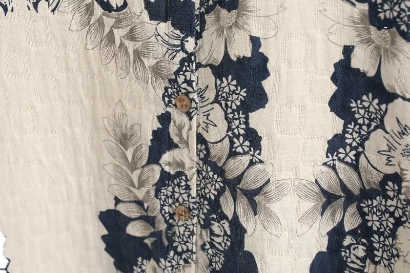 B0639☆新品 レディース トップス ブラウス ロングシャツ 素敵花柄綿麻