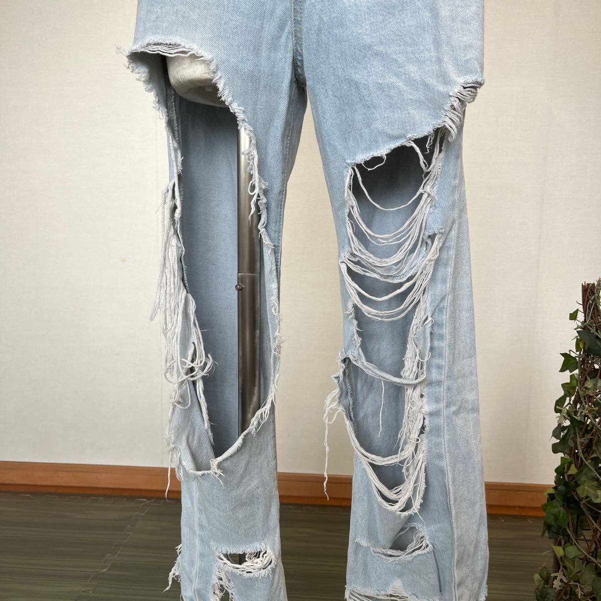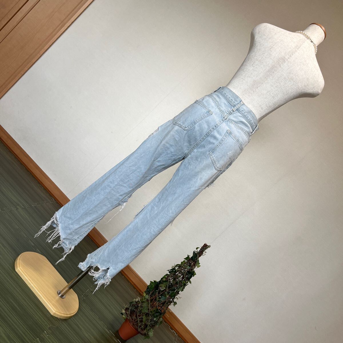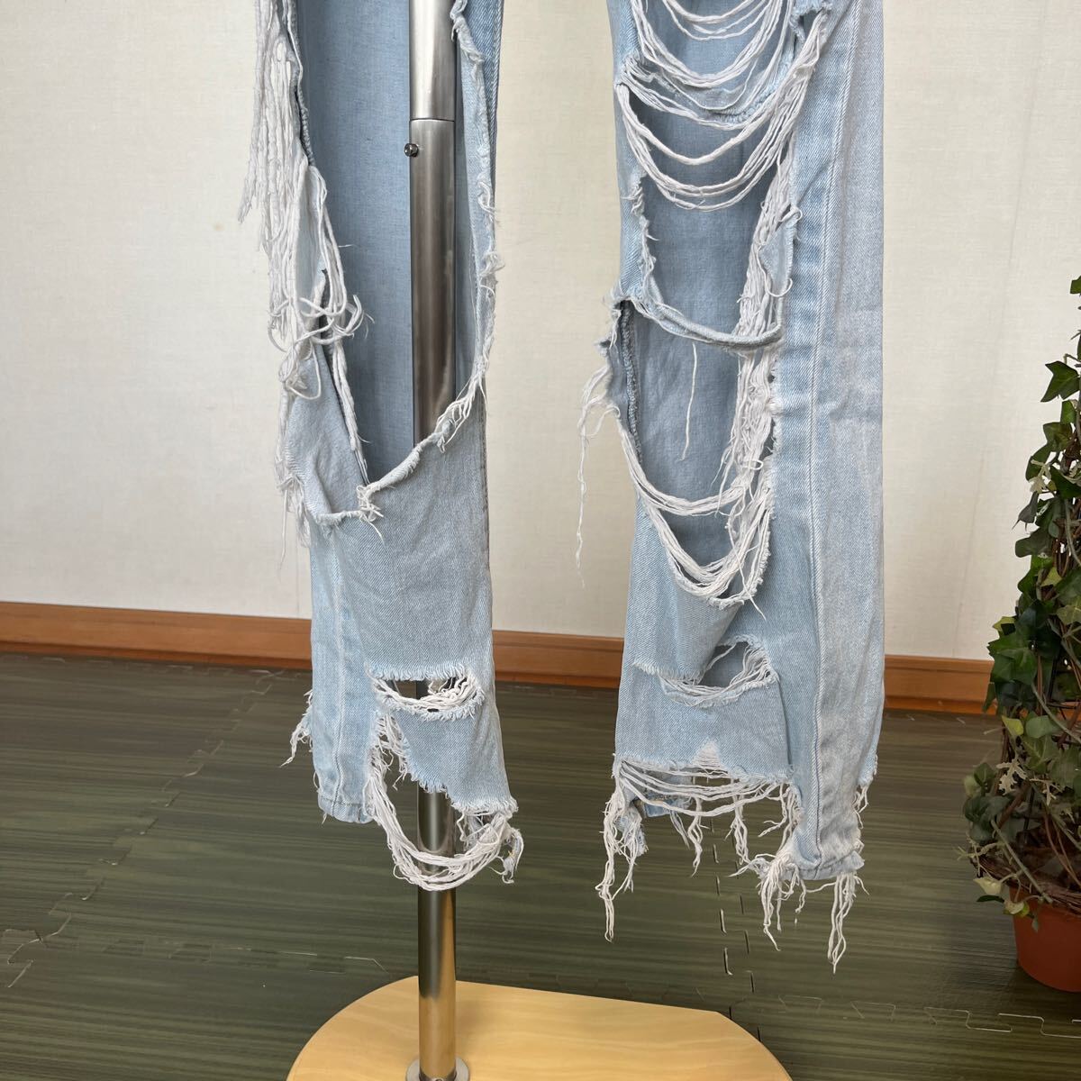 8-6WEGO STANDARD ウィゴー ヘビークラッシュデニムパンツ  ダメージデニムロングパンツ ライトインディゴブルー レディース S W64