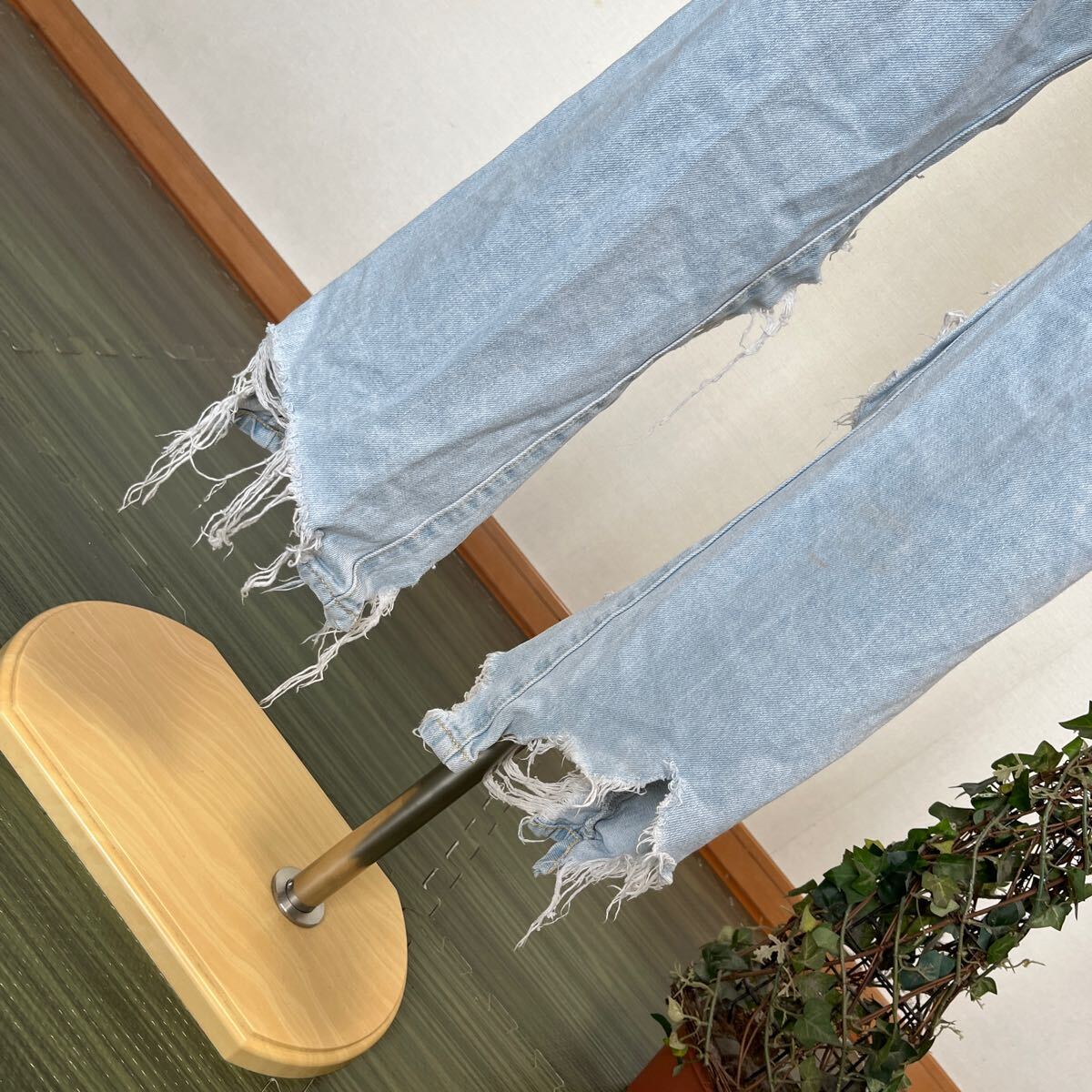 WEGOの数回使用のおしゃれなデニム。ヘビークラッシュデニムパンツ。 ダメージ加工があり程よい肌見せが叶います! どんなトップスとも相性が◎ カジュアルからストリートまで幅広く着て頂けます! ショートトップスで肌見せするスタイルがオススメです◎