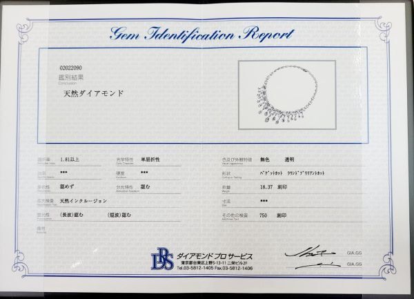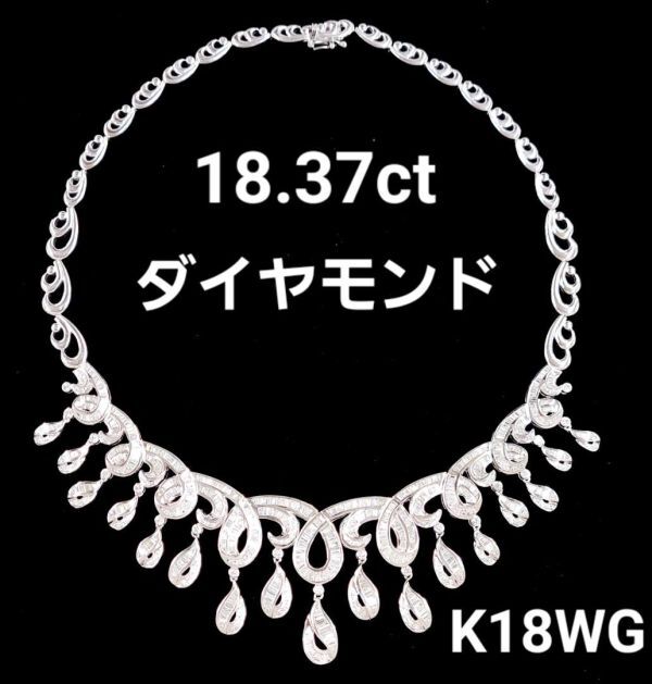 【製造大卸☆最安値】ゴージャス!18.37ct 天然 ダイヤモンド K18 WG ホワイトゴールド ネックレス チョーカー 【鑑別書付】