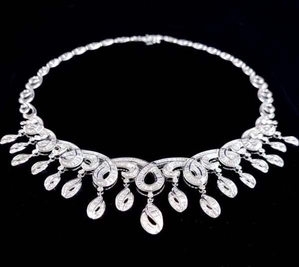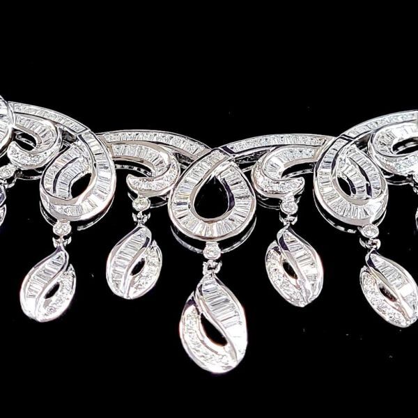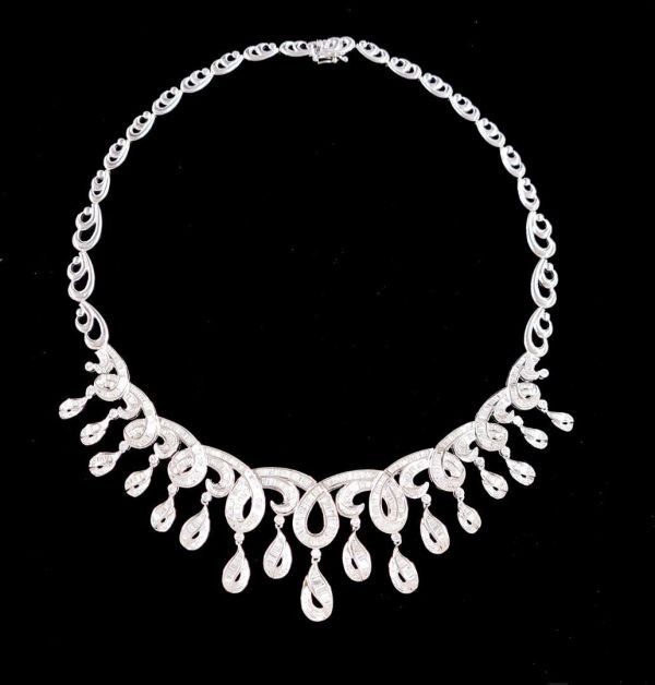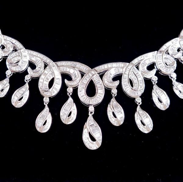 厳選された無色のSI相当のダイヤモンドを贅沢に使用した、眩い輝きを放つ18.37ctダイヤモンドネックレス。