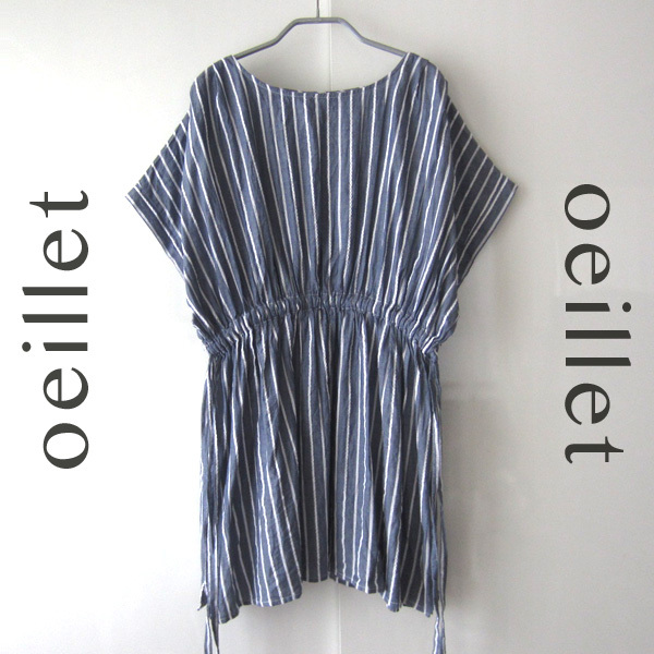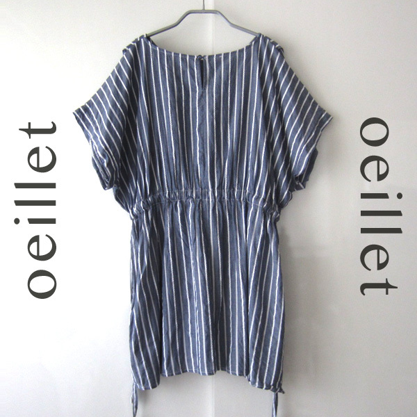 美品 oeillet/ウイエ★ ストライプ シャンブレーブラウス