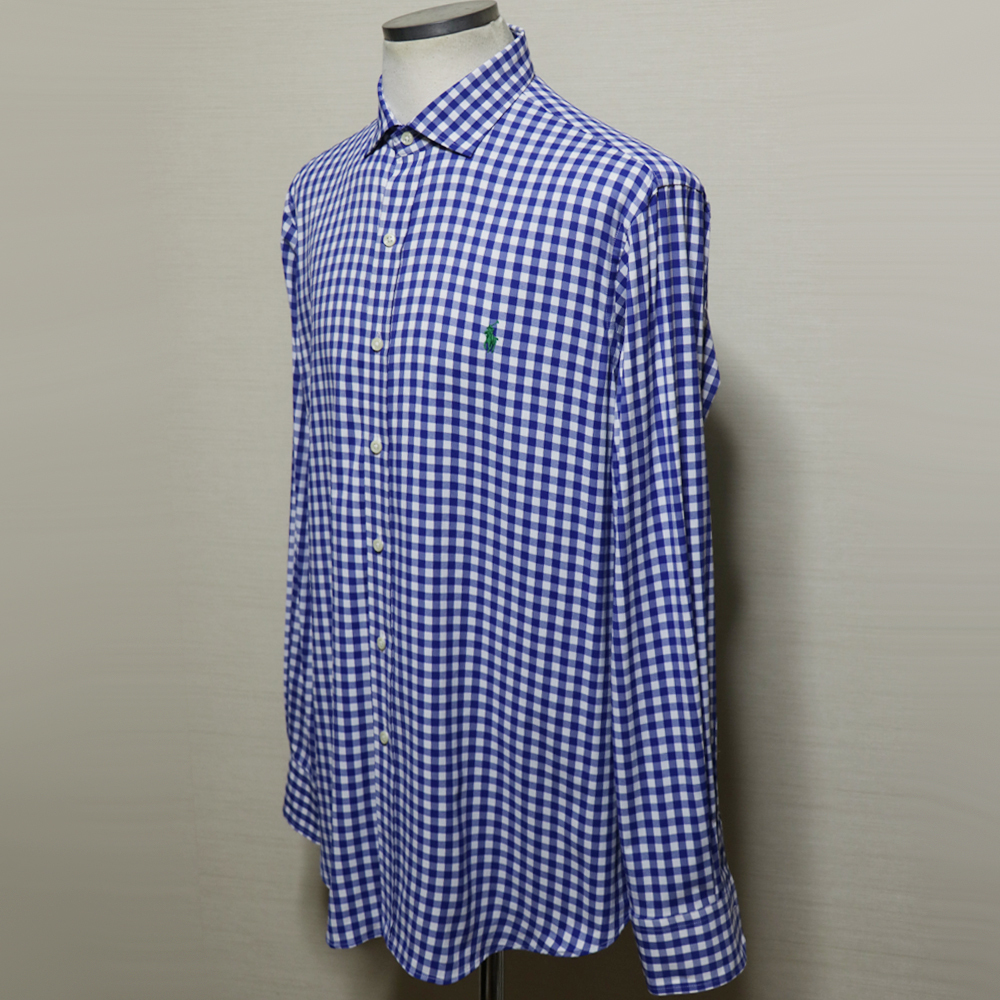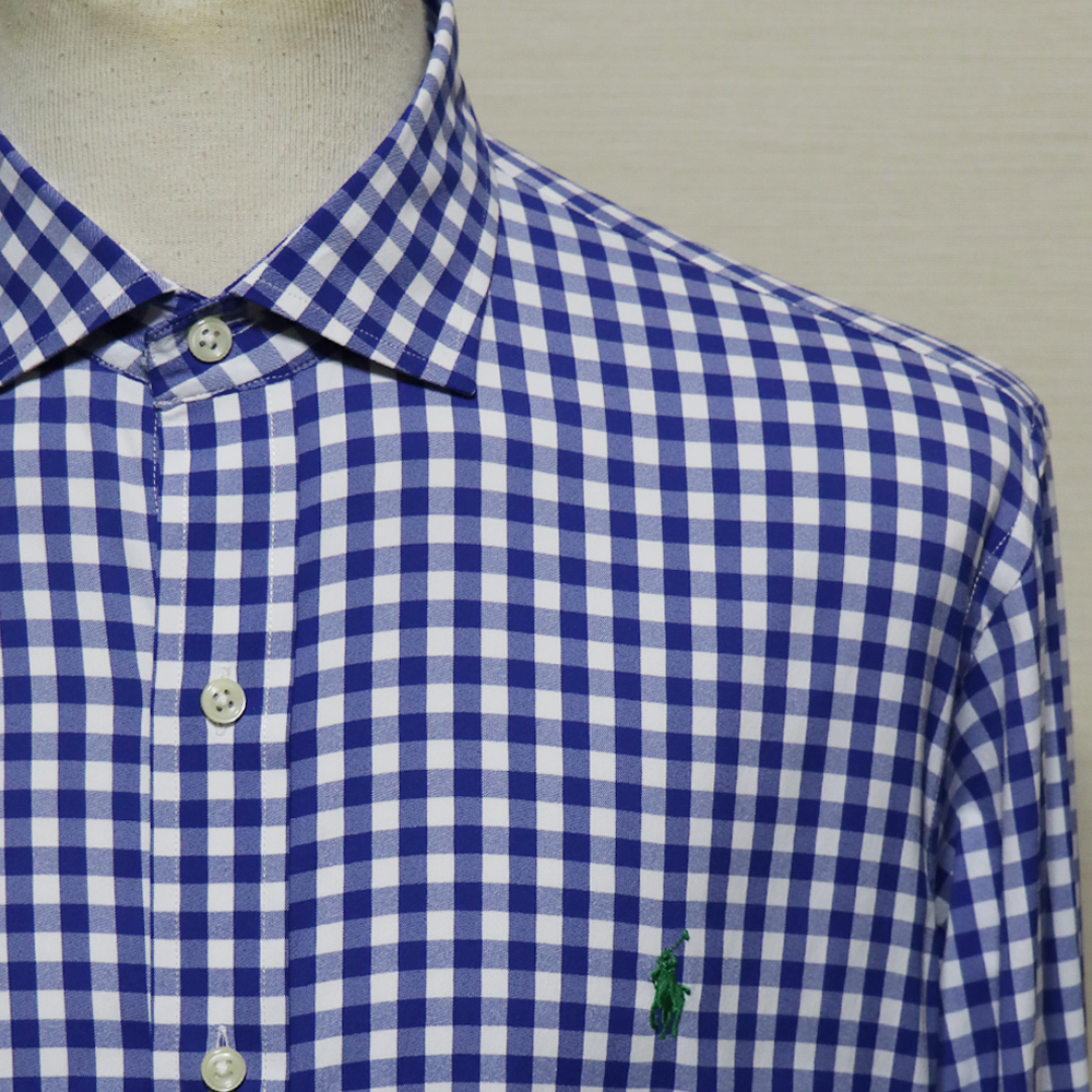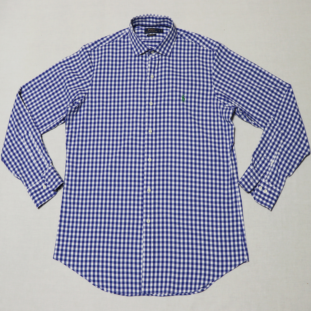 アメリカ購入品 極美品 POLO RALPH LAUREN STANTON ポロ ラルフローレン ワイドカラー ホリゾンタル シャツ ギンガムチェック 青×白 L サイズです。