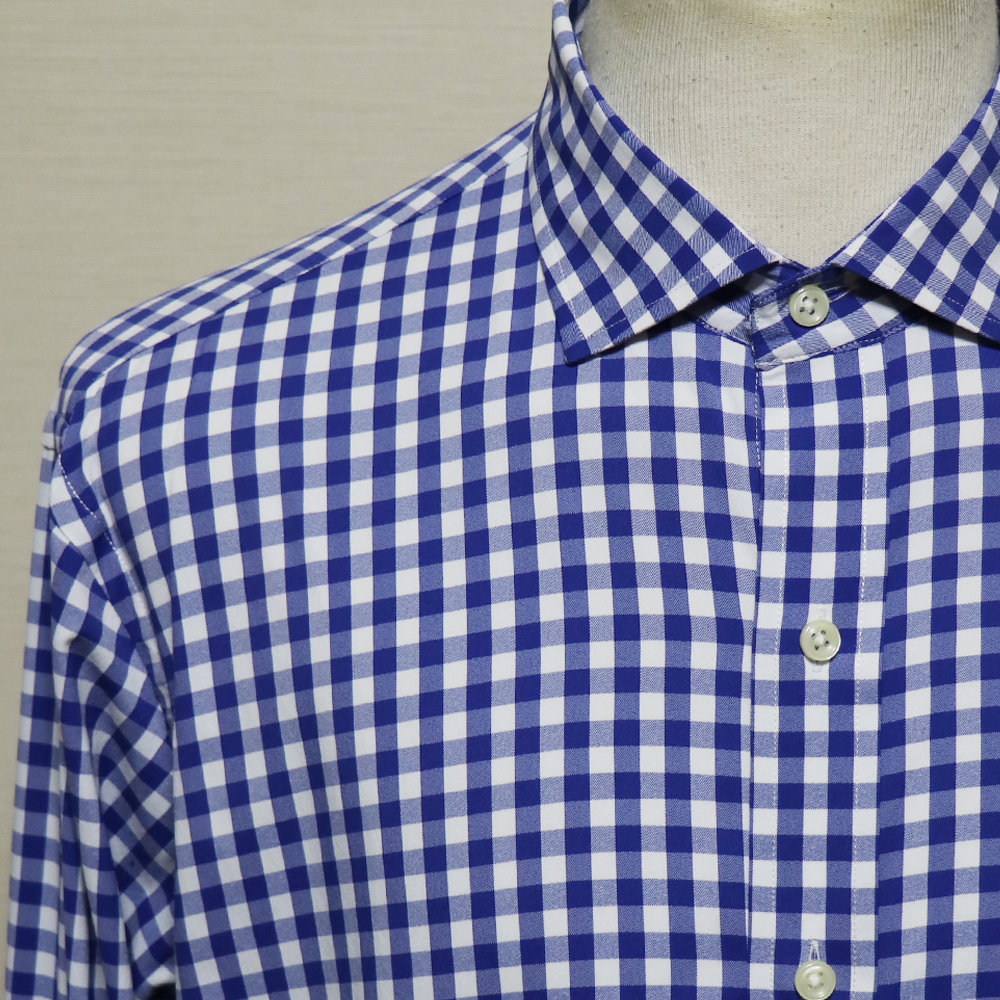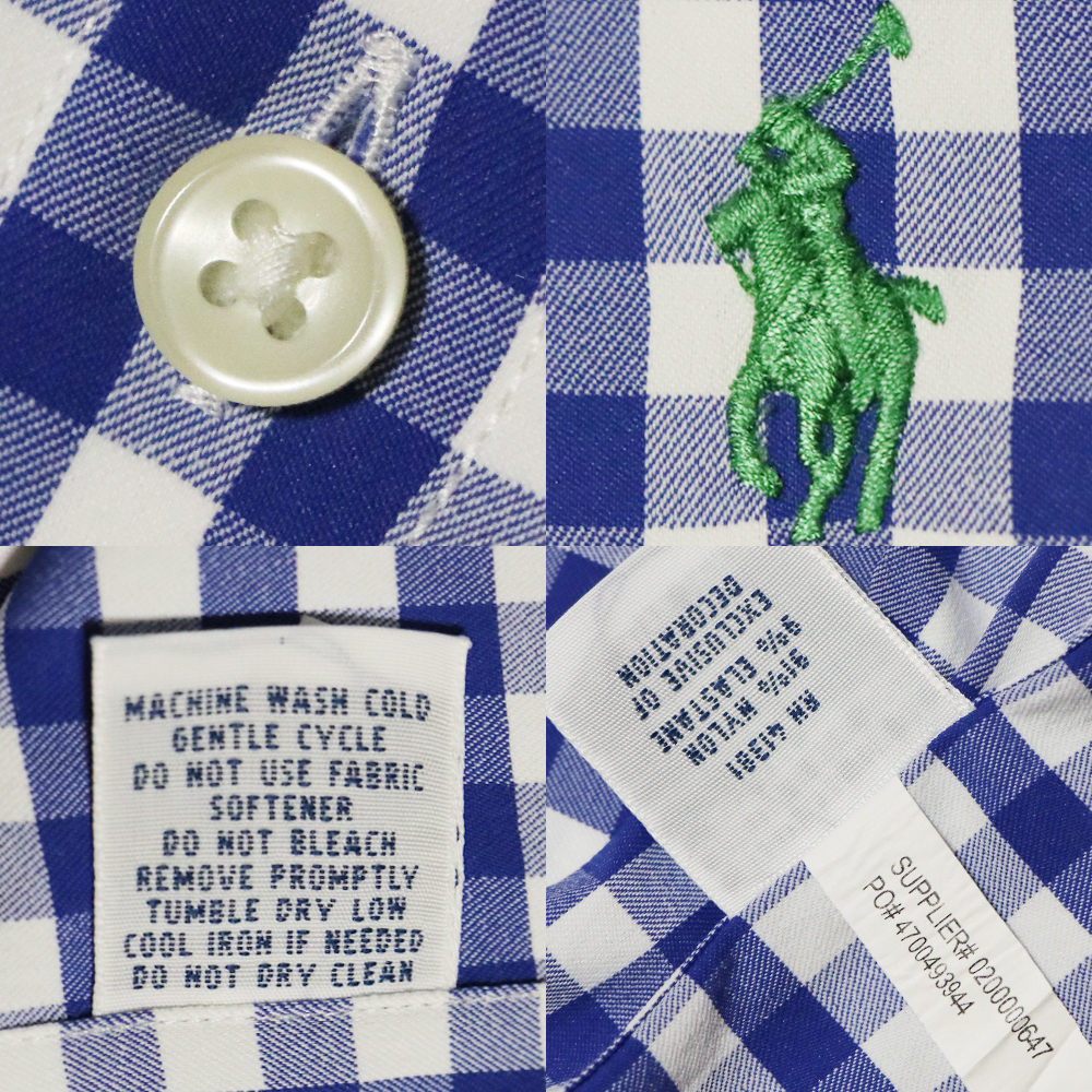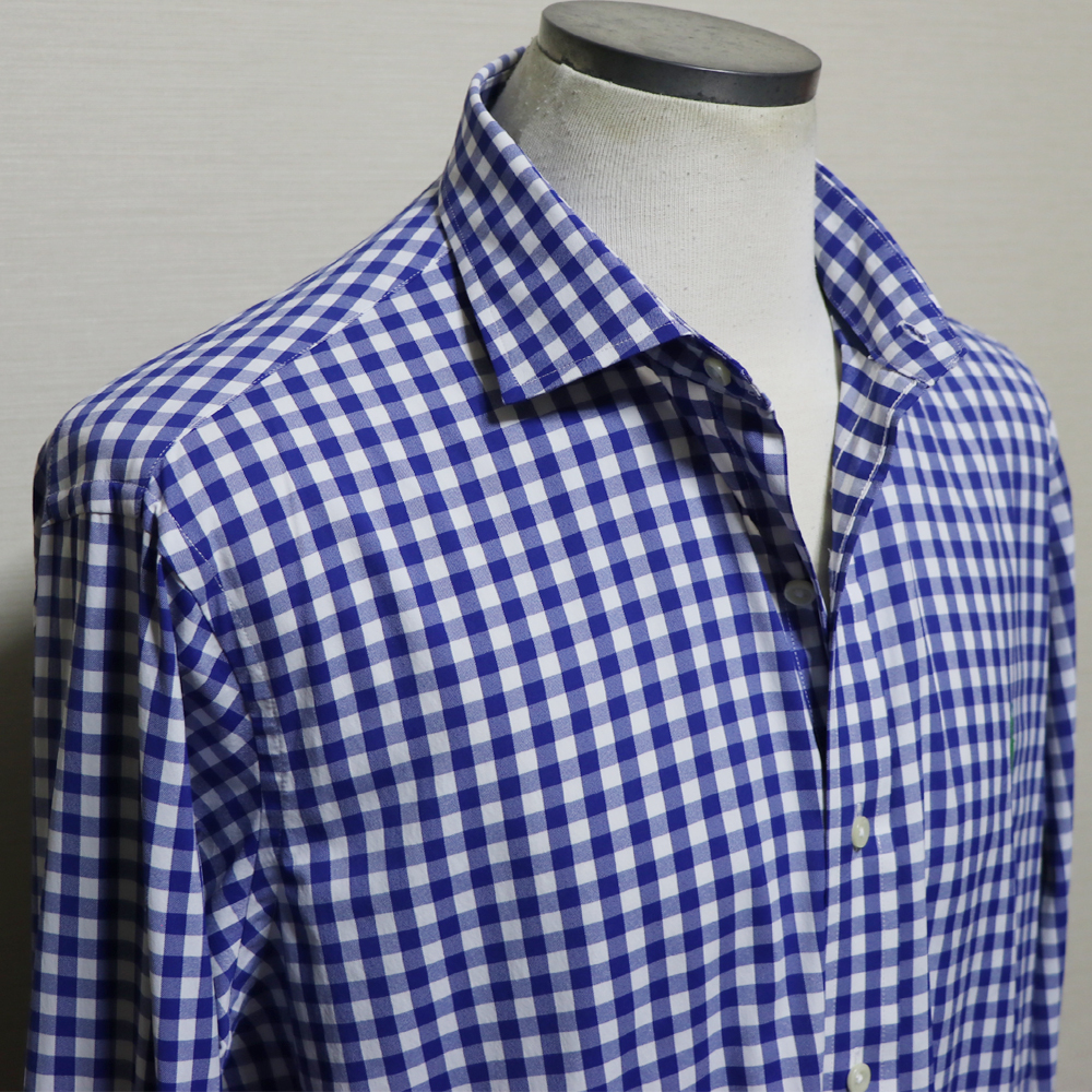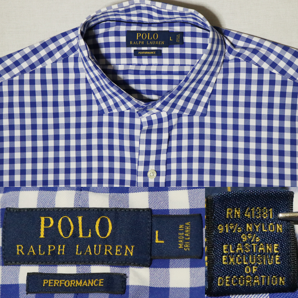 アメリカ購入品 極美品 POLO RALPH LAUREN STANTON ポロ ラルフローレン ワイドカラー ホリゾンタル シャツ ギンガムチェック 青×白 L サイズです。