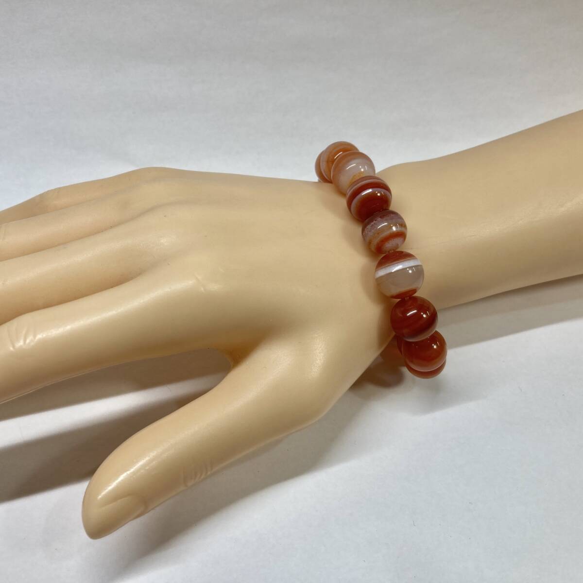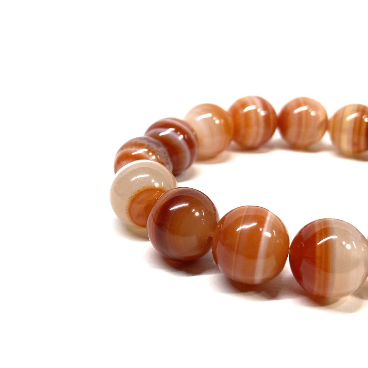 こちらは、12mm玉のカーネリアン・サードニクスを使用したパワーストーンブレスレットです。シンプルなデザインは、男女問わずどんなコーディネートとも合わせ易いブレスレットです。サイズは内周約17cmです。(サイズ変更の場合は取引ナビにてご連絡をお願いします。) 数に限りがございますので気になる方はお早めにどうぞ。