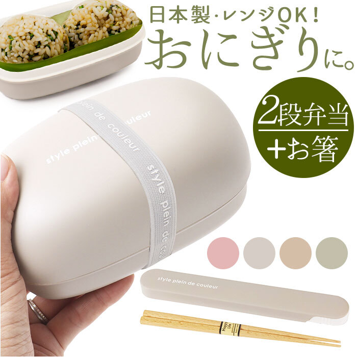 | 商品説明 | ・・【ランチのお供にぴったり】 ・カバンに収納しやすくスマートに持ち運べる!「Colors おにぎりランチ 2点セット」。 ・【抗菌加工でいつも清潔】 ・全て日本製◎それぞれのケース内側に抗菌+特殊塗装済みで、毎日使いも安心。 ・【可愛らしいナチュラルカラー】 ・性別や年代問わず使いやすいカラーリング。家族色違いで揃えるのもおすすめ! ・《おにぎりケース》 ・【コンパクトで少食さんにぴったり】 ・おにぎりと、おかずをちょこっと持ち歩きたい方に。ミニマルな容量約300mlの2段式♪ ・【1段でも2段でも使い方自在】 ・本体(下段)におかず、中蓋におにぎりをON。中蓋を使わず、おにぎりだけ入れてもOK。 ・【レンジ対応!熱々おかずが復活】 ・中蓋を外して電子レンジでの温めOK。オフィスでも温かいランチを楽しめちゃう! ・【食洗機が使えてお手入れラクラク】 ・中蓋を除いて食洗機が使用可能。お手入れしやすく、忙しい毎日の味方◎ ・【子供も大人も扱いやすい仕様】 ・軽くて割れにくい素材を使用。家族みんなで使えるのが嬉しい! ・【しっかりホールドして汁漏れ防止】 ・ケースをまとめるバンドが付属。汁漏れを防いで、持ち運びもラクラク。 ・《箸ケースセット》 ・【出し入れもお手入れも簡単】 ・スムーズに出し入れできるスライド式箸箱。分解できるから、しっかり洗えて衛生的◎ ・【温かみのある木製のお箸】 ・お箸はナチュラルな木目が美しい天然木素材。女性やお子様の手に馴染みやすい18cmサイズ。 |