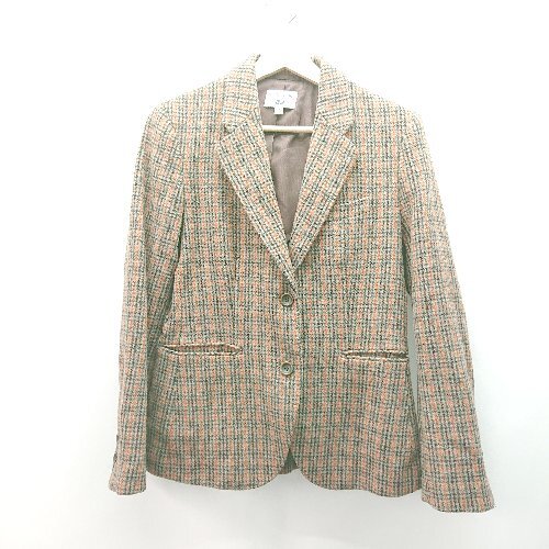 ◇ UNIQLO シングルボタン チェック柄 バックスリット 厚手 長袖 ジャケット サイズM ブラウン/オレンジ レディース E