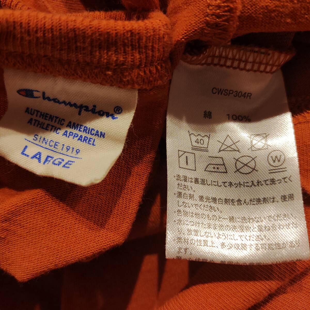 チャンピオン Champion ワッペン付 コットン 半袖 Tシャツ L オレンジ です。
