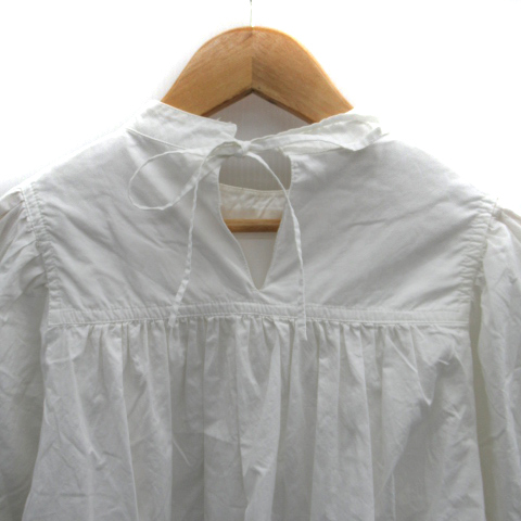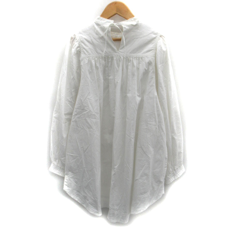 ドゥドゥ DOUDOU シャツチュニック 長袖 バンドカラー リボン M 白 ホワイト /SM33 ■MO レディース
