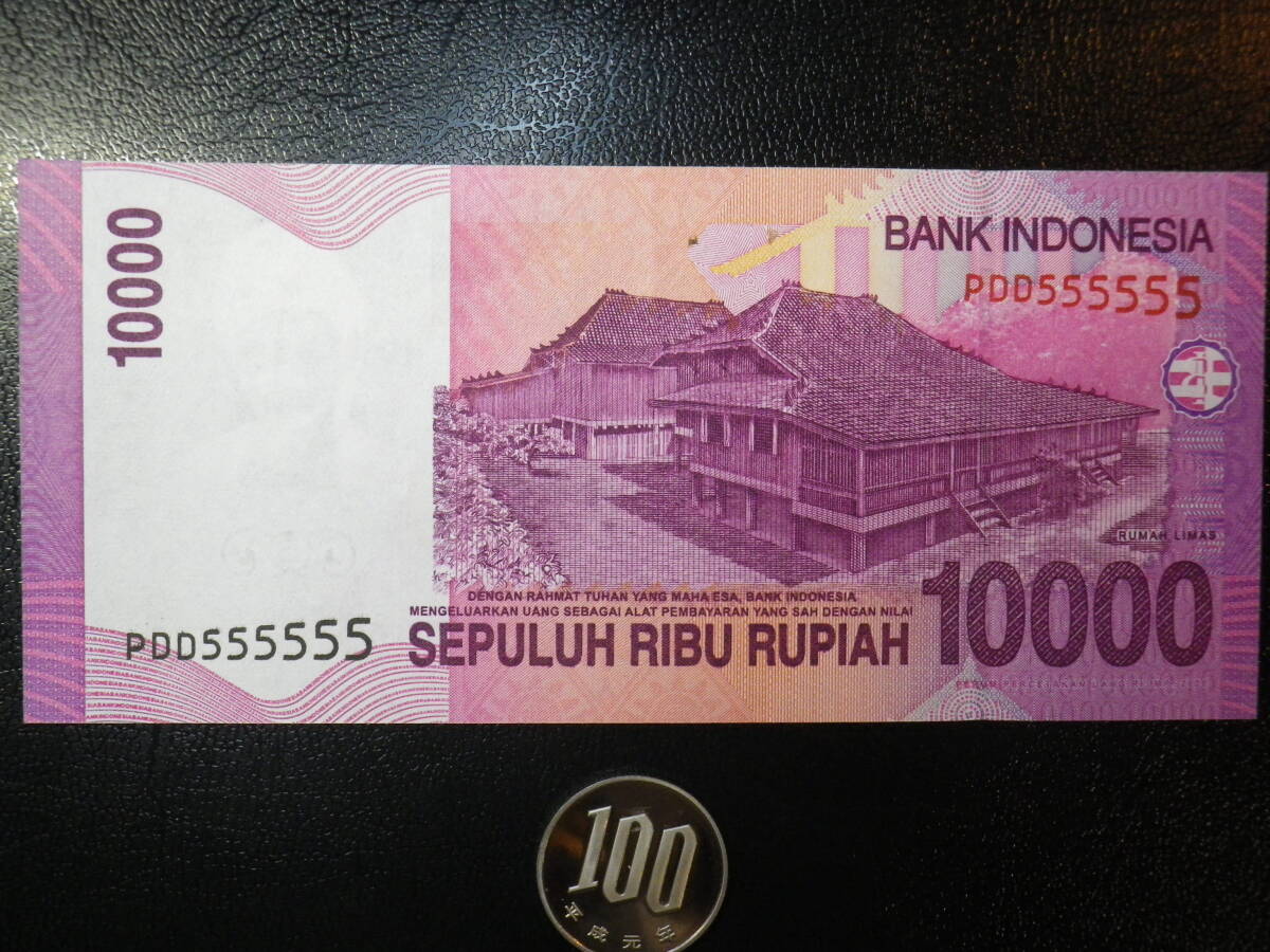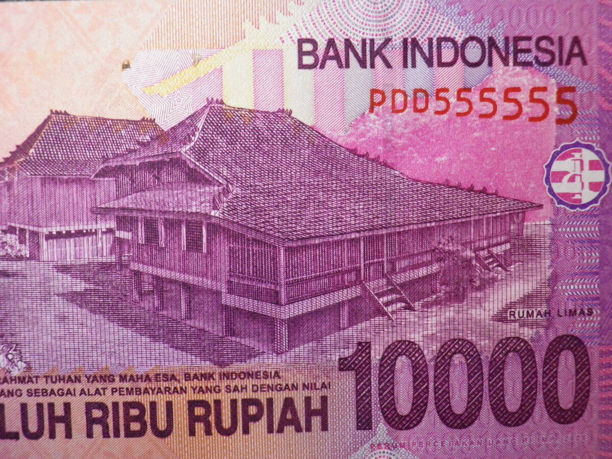 珍番 インドネシア 2005年 10000Rupiah PDD 555555 未使用