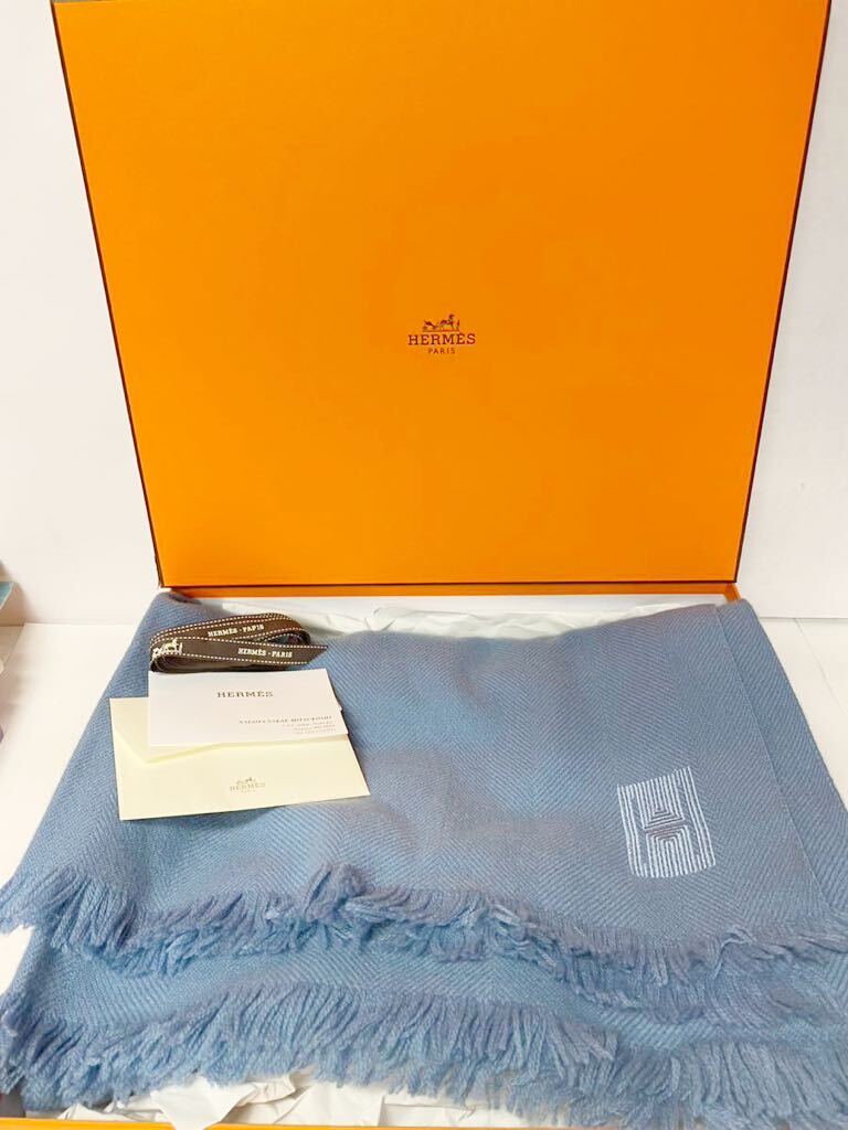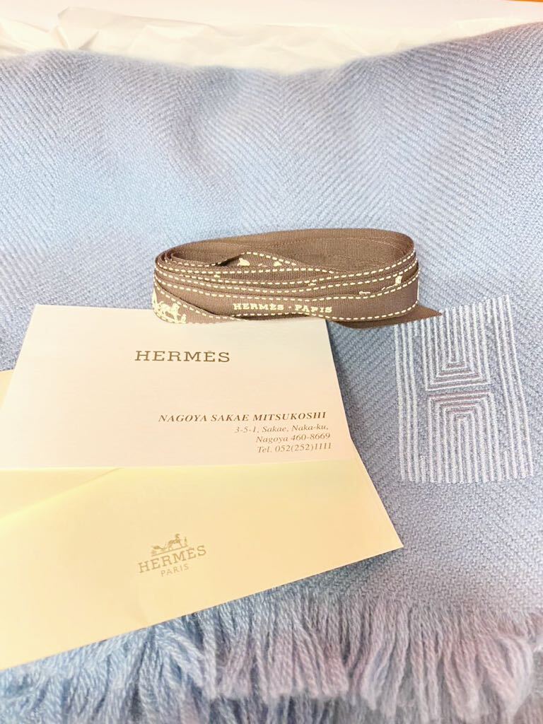 新品・未使用 定価18万 HERMES エルメス カシミア 大判マフラー ストール 箱/カード