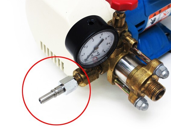 通常、洗浄機と吐水ホースの着脱にはモンキーレンチが必要ですが、 このワンタッチカプラを取り付けることによりモンキーレンチが不要になります。
