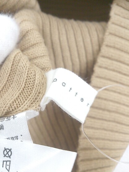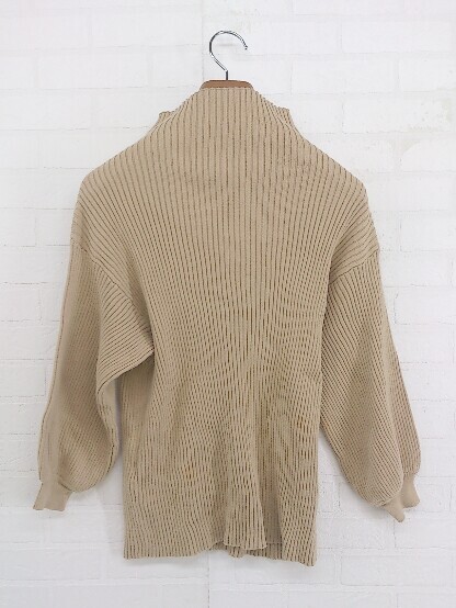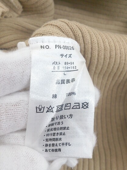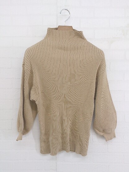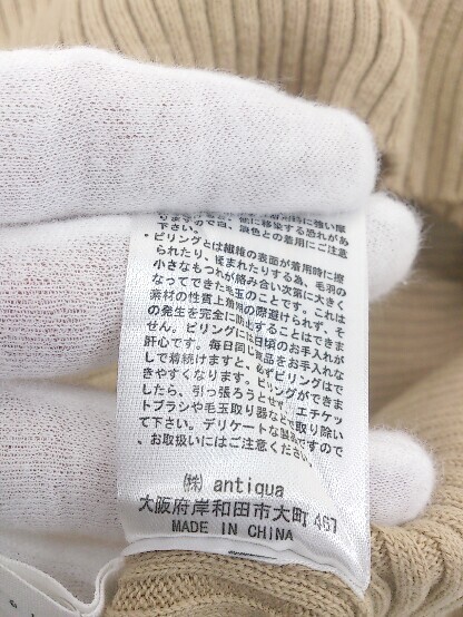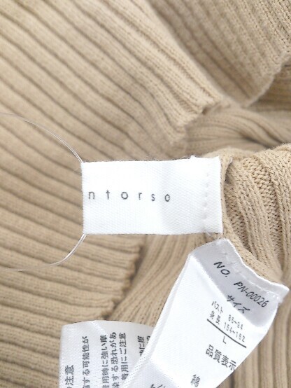 ◇ antiqua patterntorso ハイネック コットンニット 七分袖 カットソー サイズL ベージュ系 レディース P