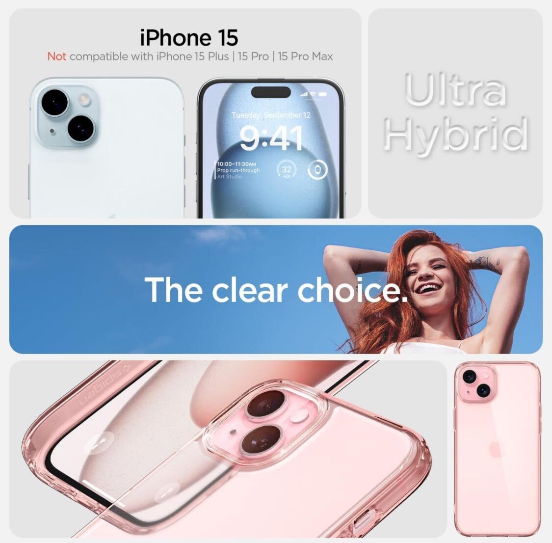 iPhone 15 ケース クリア 耐衝撃 米軍MIL規格取得 ストラップホール 黄変抑制 透明 TPU バンパーケース 2重構造 レンズ保護 擦り傷防止 ワイヤレス充電対応 ウルトラ・ハイブリッド ACS06795 (ローズ・クリスタル)