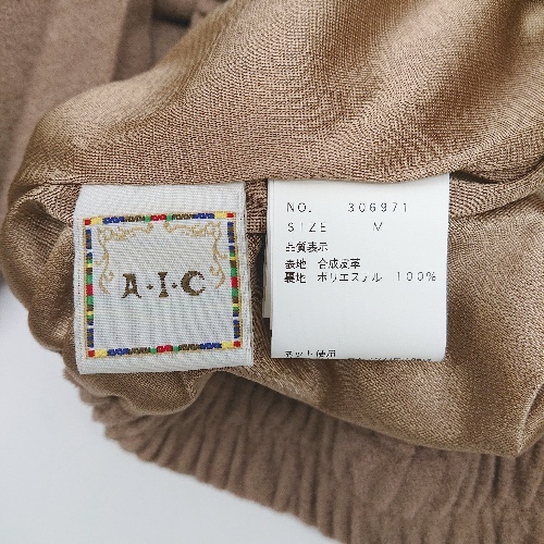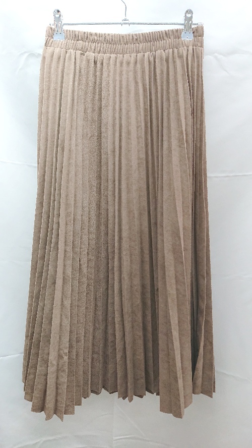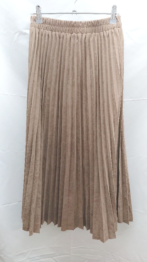 ◇ A.I.C ウエストゴム 裏地 プリーツ ベロア系 ひざ丈 フレア スカート サイズM ブラウン系 レディース E