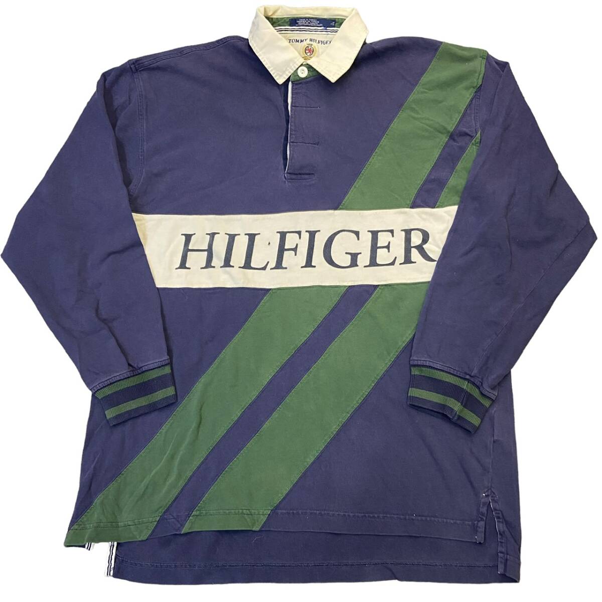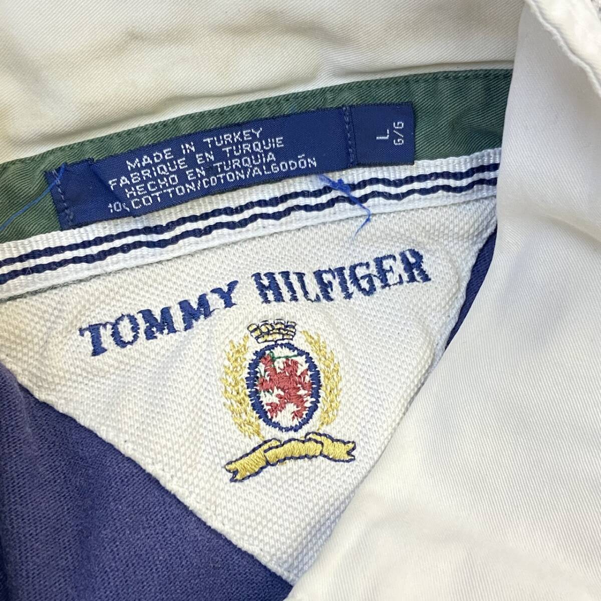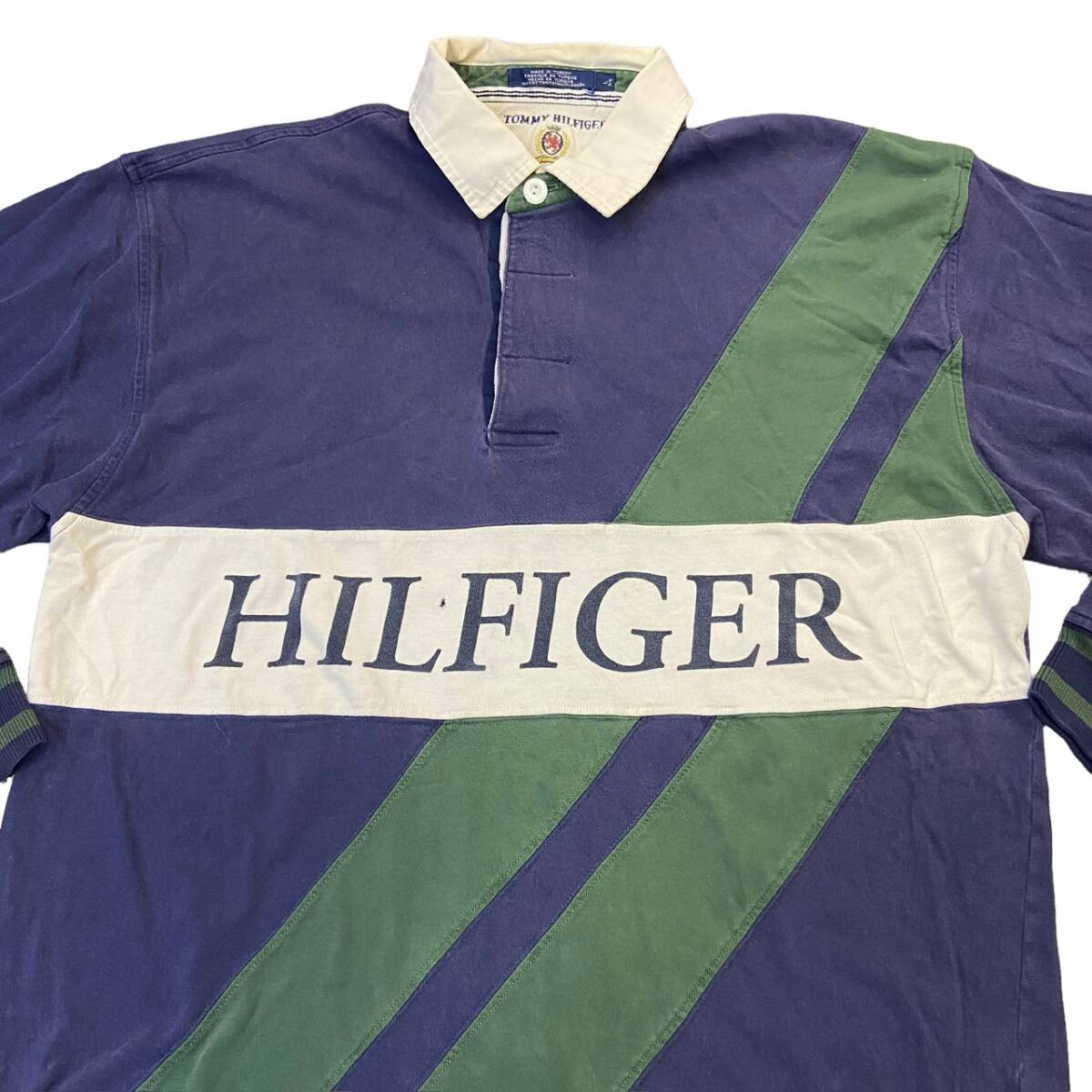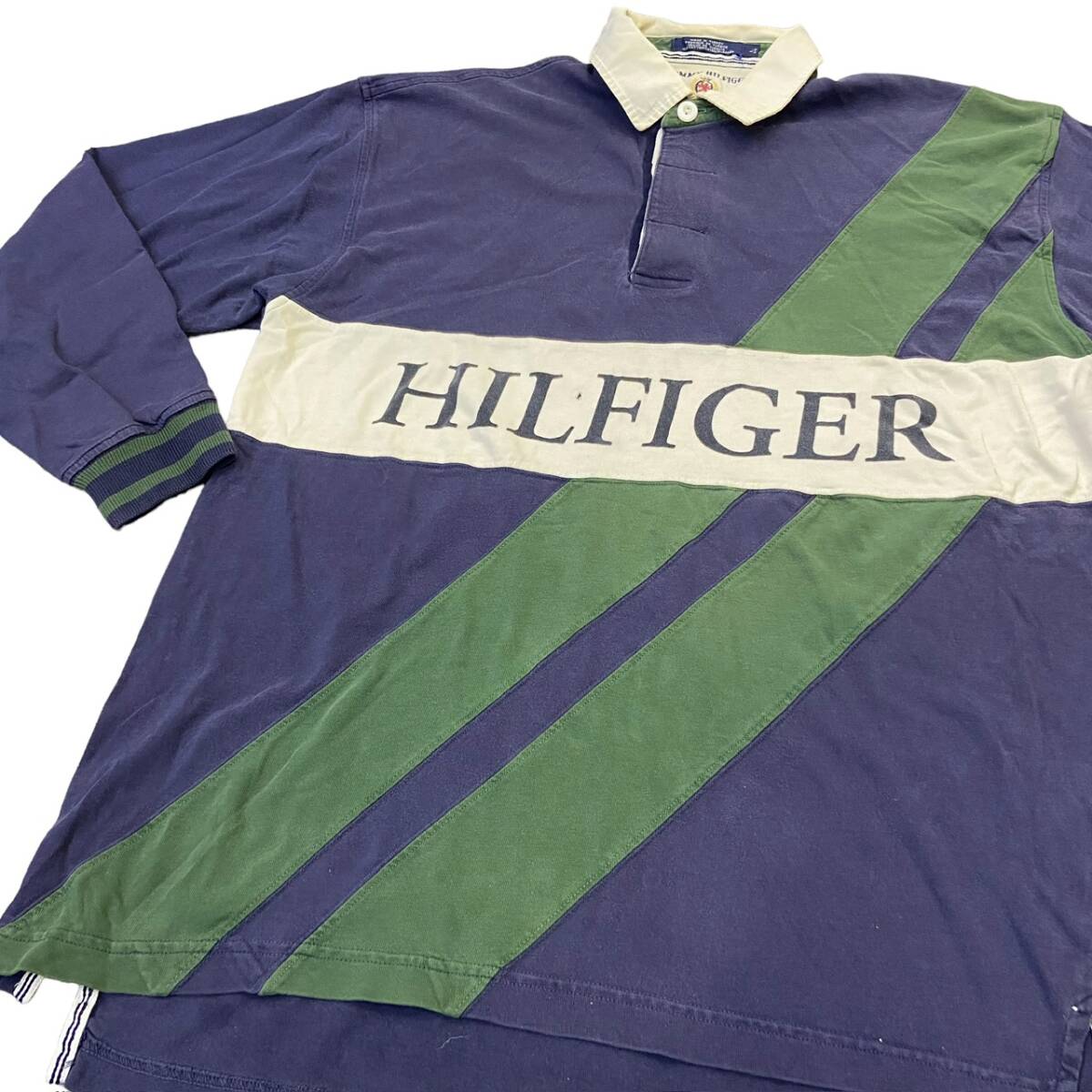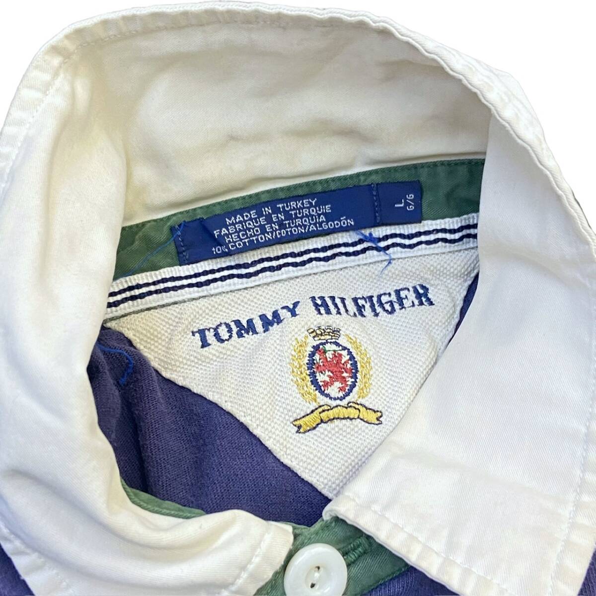 TOMMY HILFIGER ラガーシャツ L ネイビー×グリーン トミーヒルフィガー