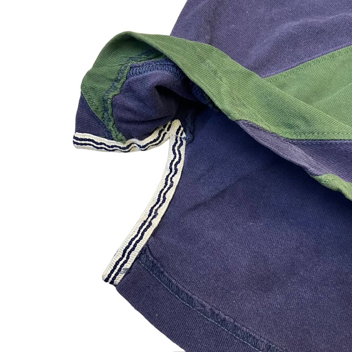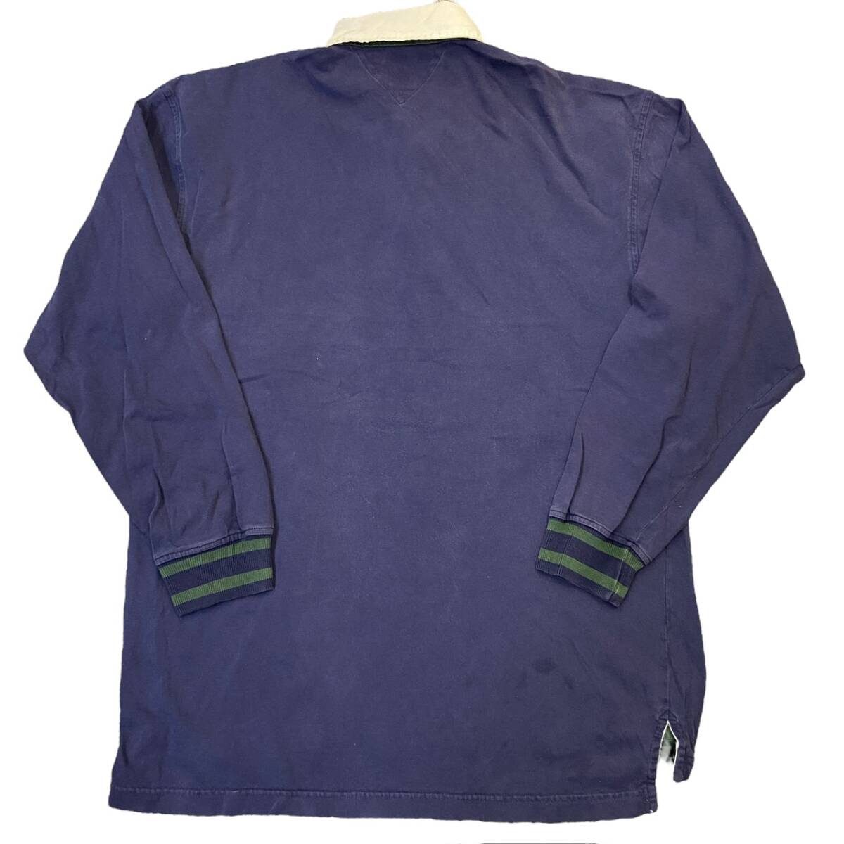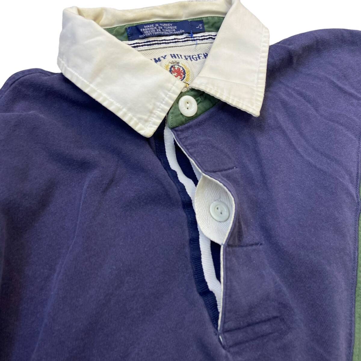 TOMMY HILFIGER ラガーシャツ L ネイビー×グリーン エンブレム ロゴ 刺繍 長袖 ラグビー ポロシャツ トミー トミーヒルフィガー