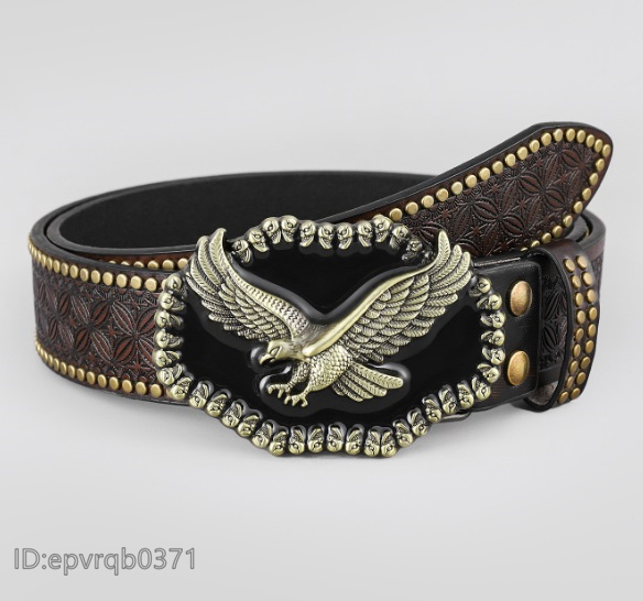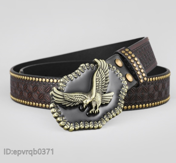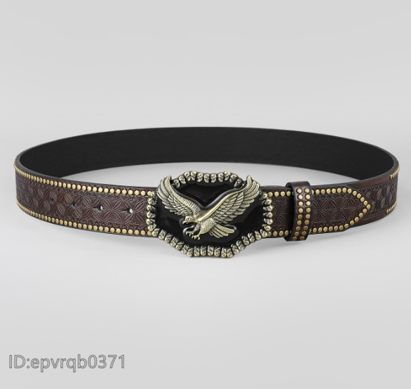 ベルト 新入荷 メンズ レザーベルト ピンバックル式 金属バックル イーグル 柄物 革ベルト 紳士用 長さ調整可能 ポンチ付き /茶