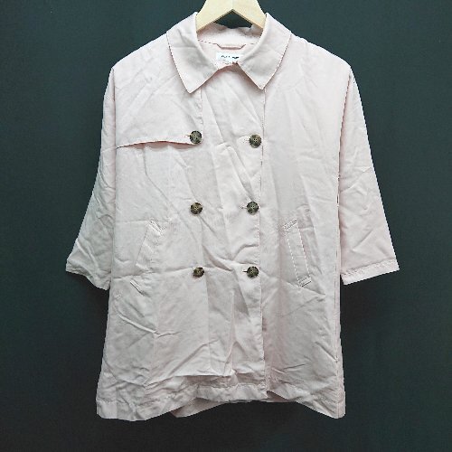 ◇ GLOBAL WORK ダブルボタン カジュアル シンプル 薄手 長袖 トレンチコート サイズXL ピンク レディース E