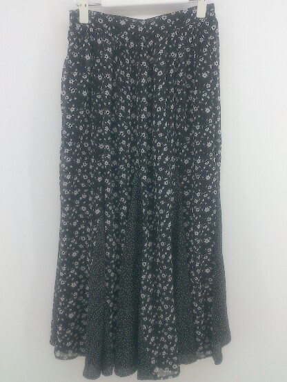 ◇ studio CLIP 花柄 切替 ドット 水玉 バックゴム ロング フレア スカート サイズM ブラック ホワイト系 レディース E