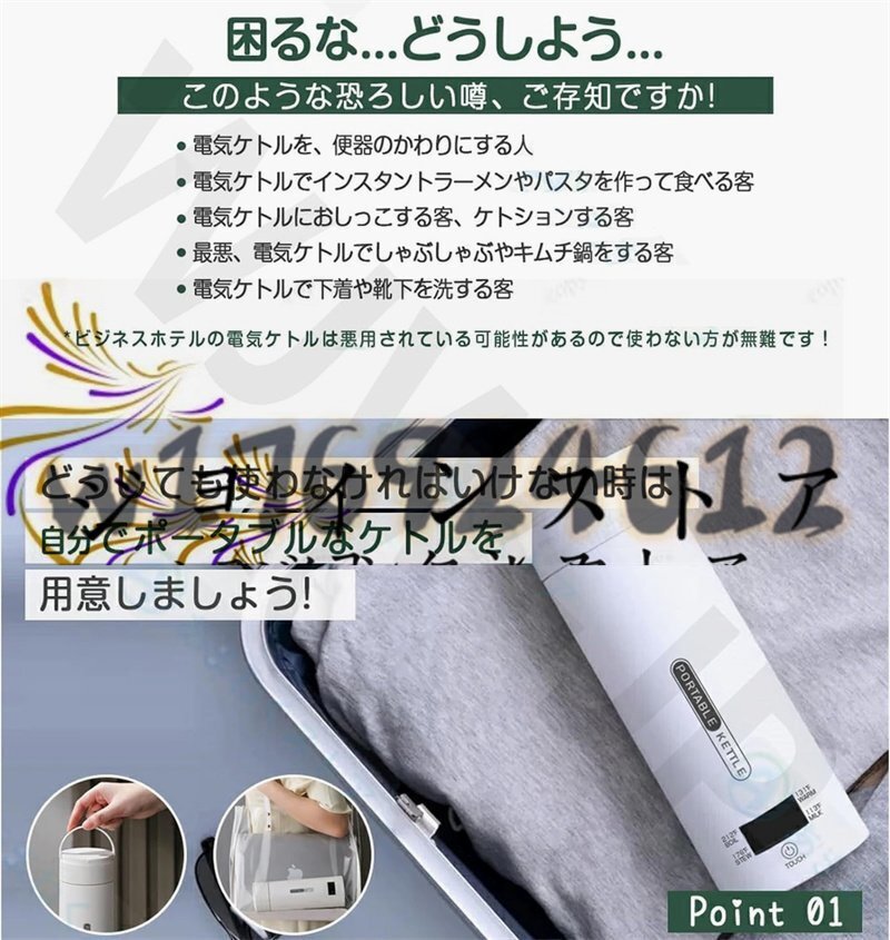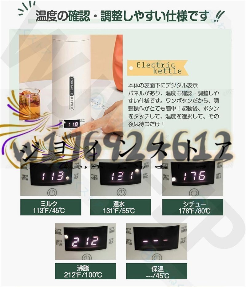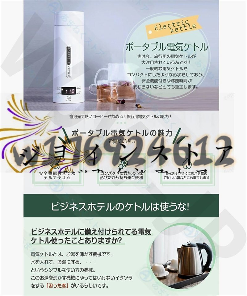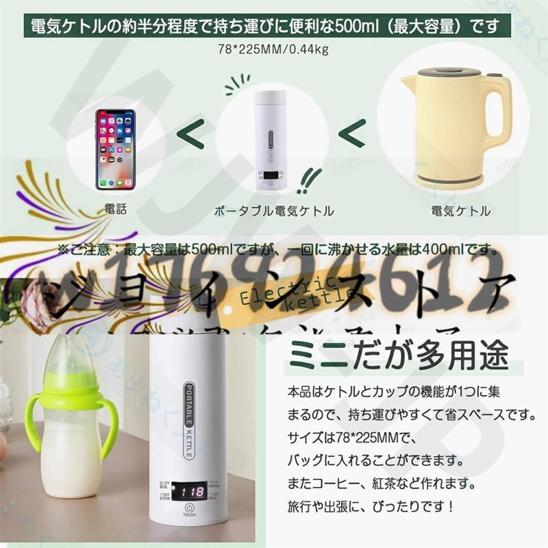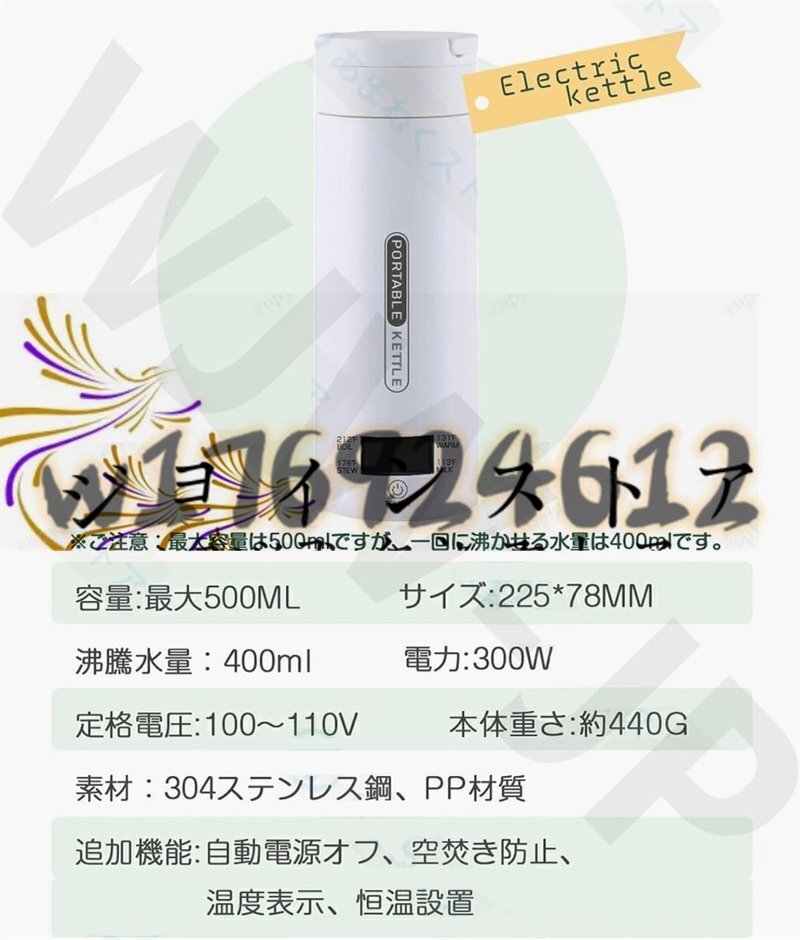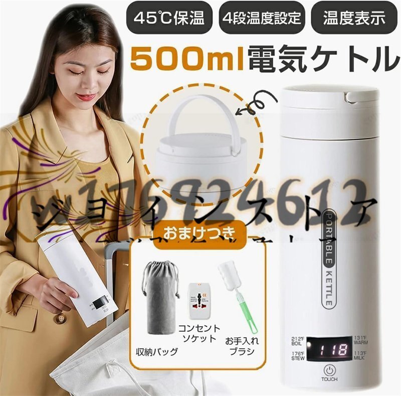 人気◆電気ポット12H保温 小型携帯湯沸かし器 ポータブル トラベルケトル大容量500ml 110V 3000W急速加熱4段温度調節電気温水カップ