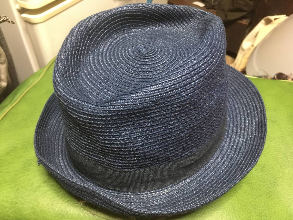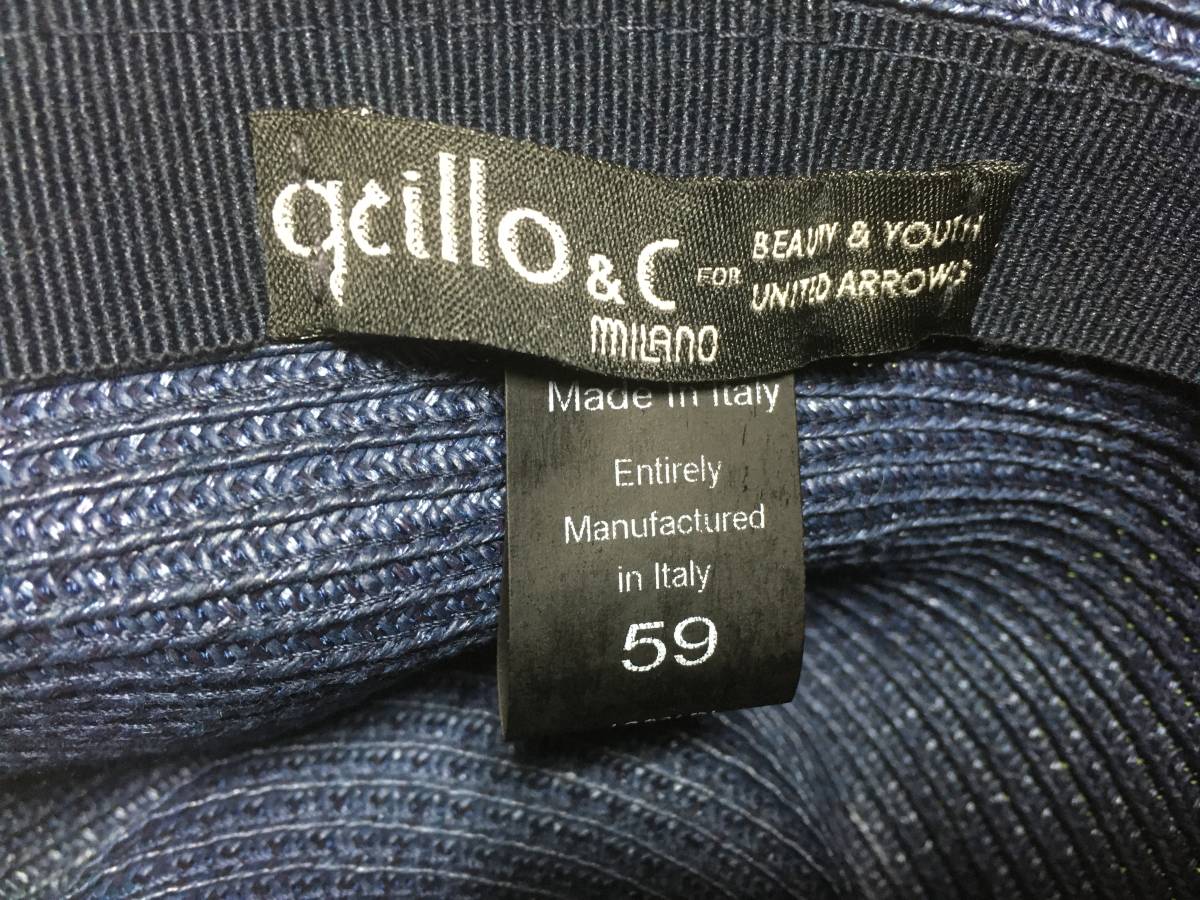 2308italyイタリア製grillo&cグリーロ×B&YビューティーアンドユースBEAUTY&YOUTH中折れ ペーパーHATハット帽子ストロー麦わらフェドラ紺