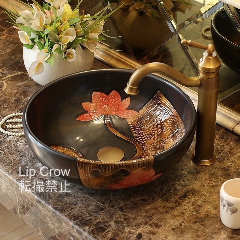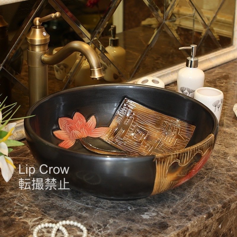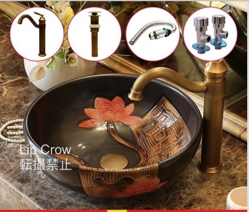 蛇口 排水金具付き 洗面台 手水鉢 手洗器 洗面 ボウル鏡なし 陶器 洗面ボール