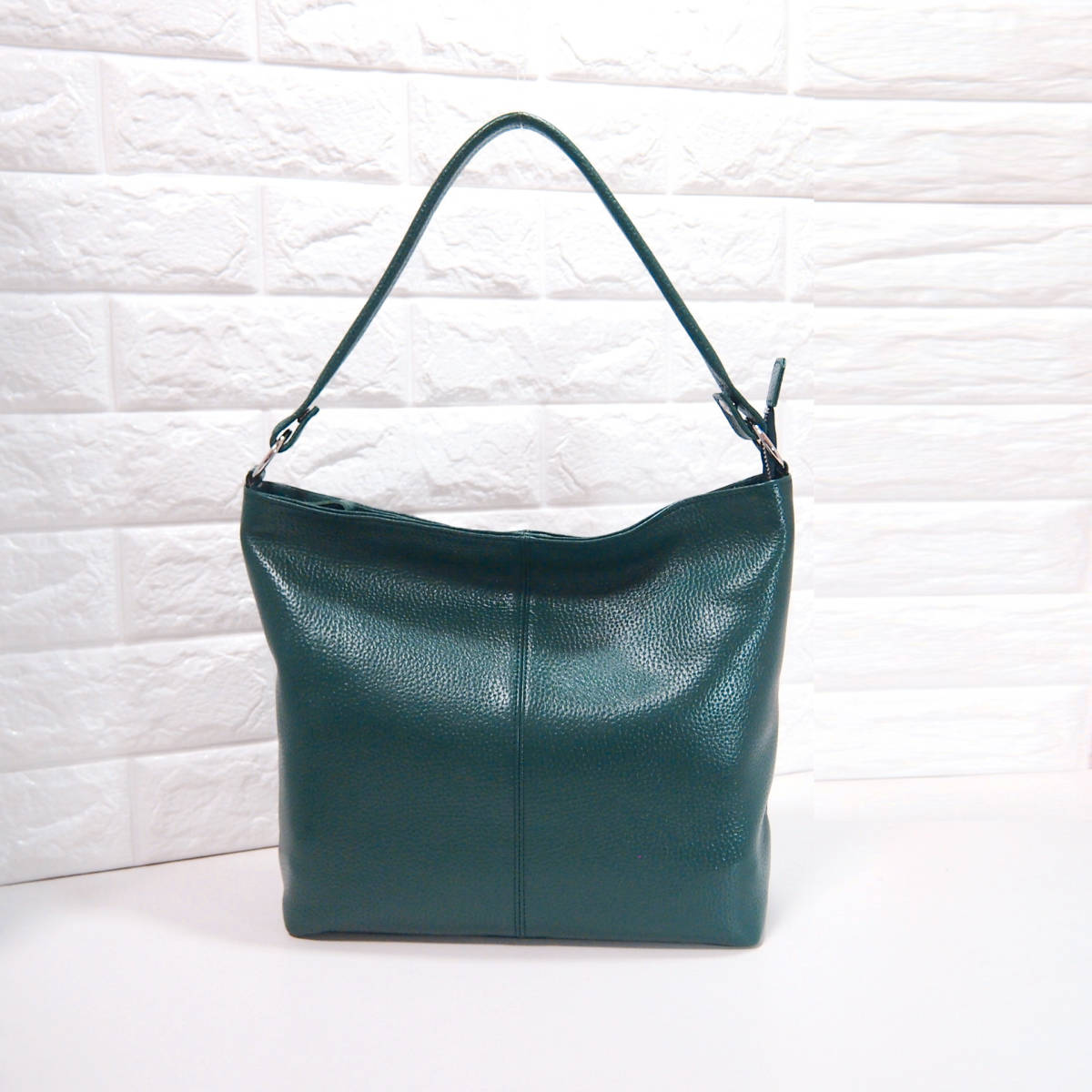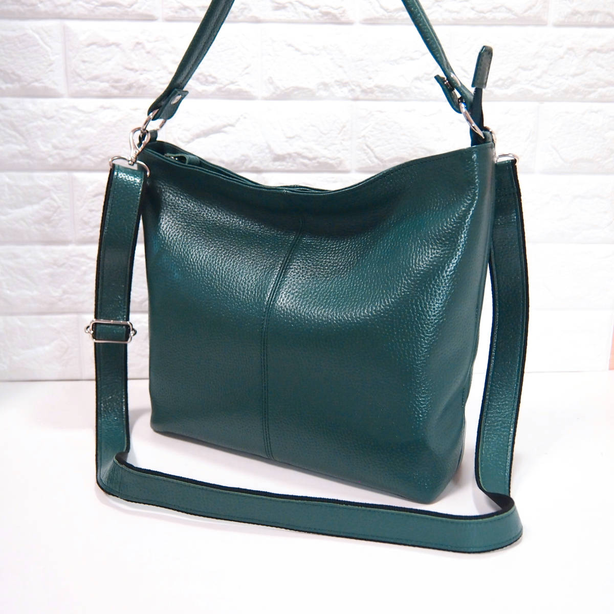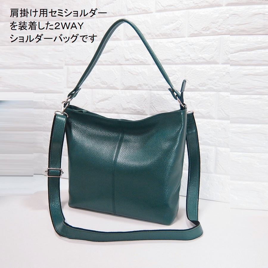 ★ハンドメイド★日本製★ソフト・本革★2WAYショルダーバッグ(ロングハンドル・肩掛け)★ブルーグリーン★ハンドル取り外し可★