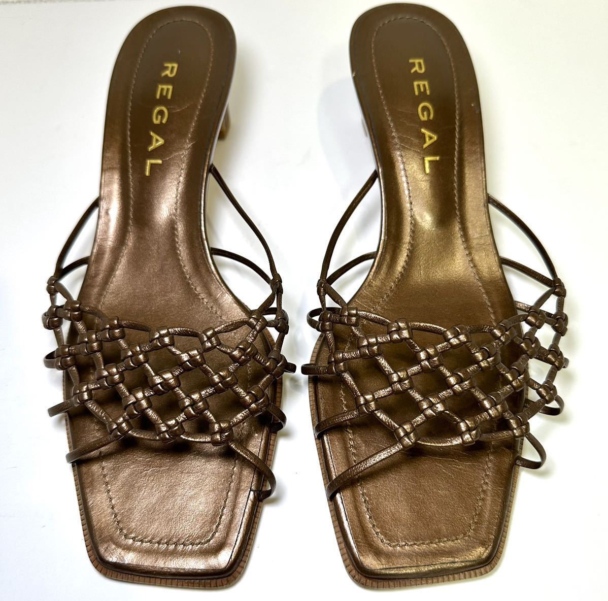 即決/美品/リーガル/REGAL/レディース/カジュアル/シューズ/ローファー/サンダル/23.5cm/ゴールド/バケーション