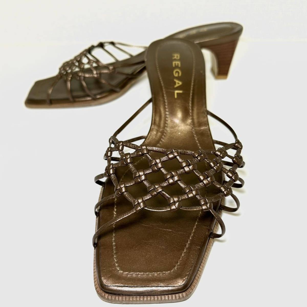 リーガルのシャンパンゴールドのサンダルシューズになります。
