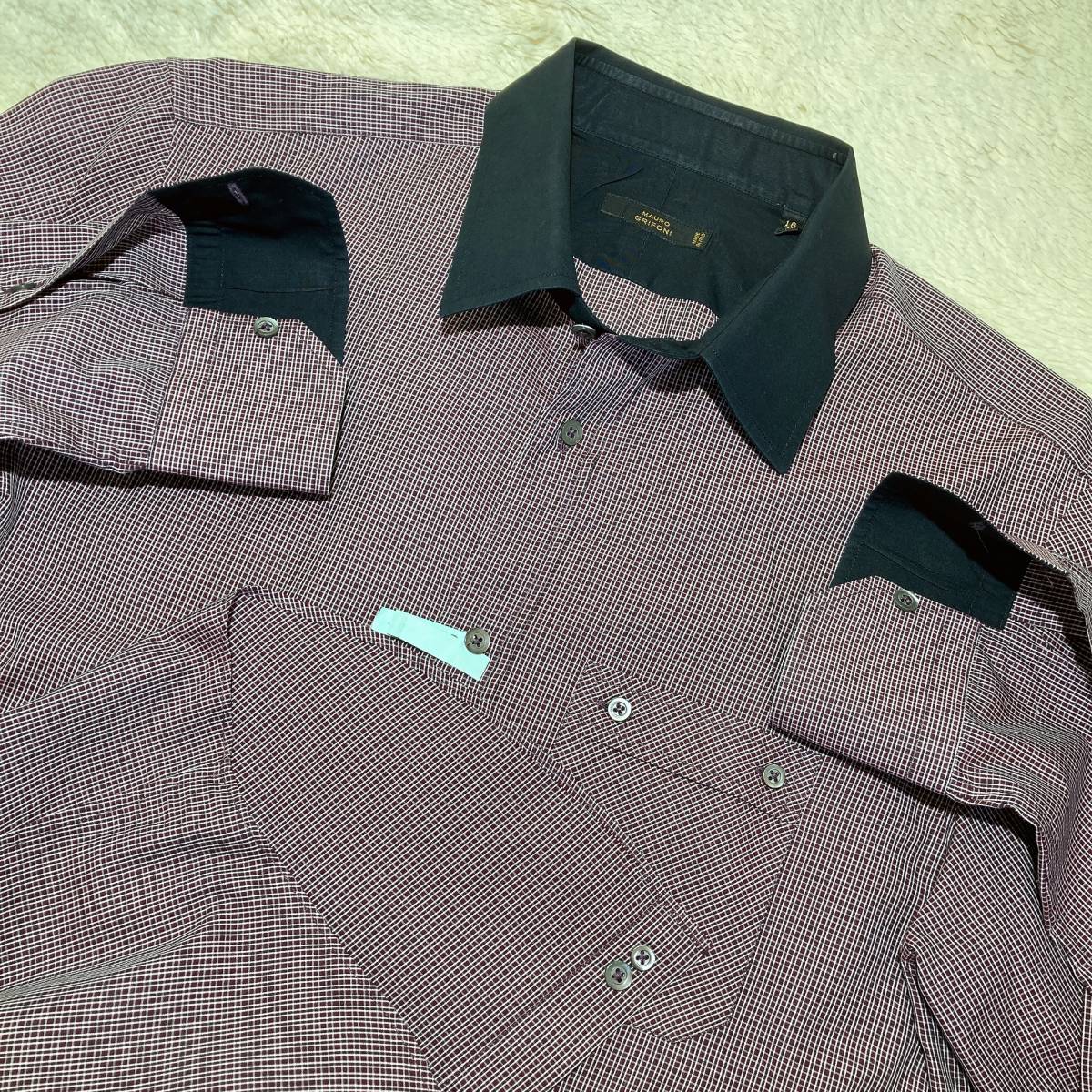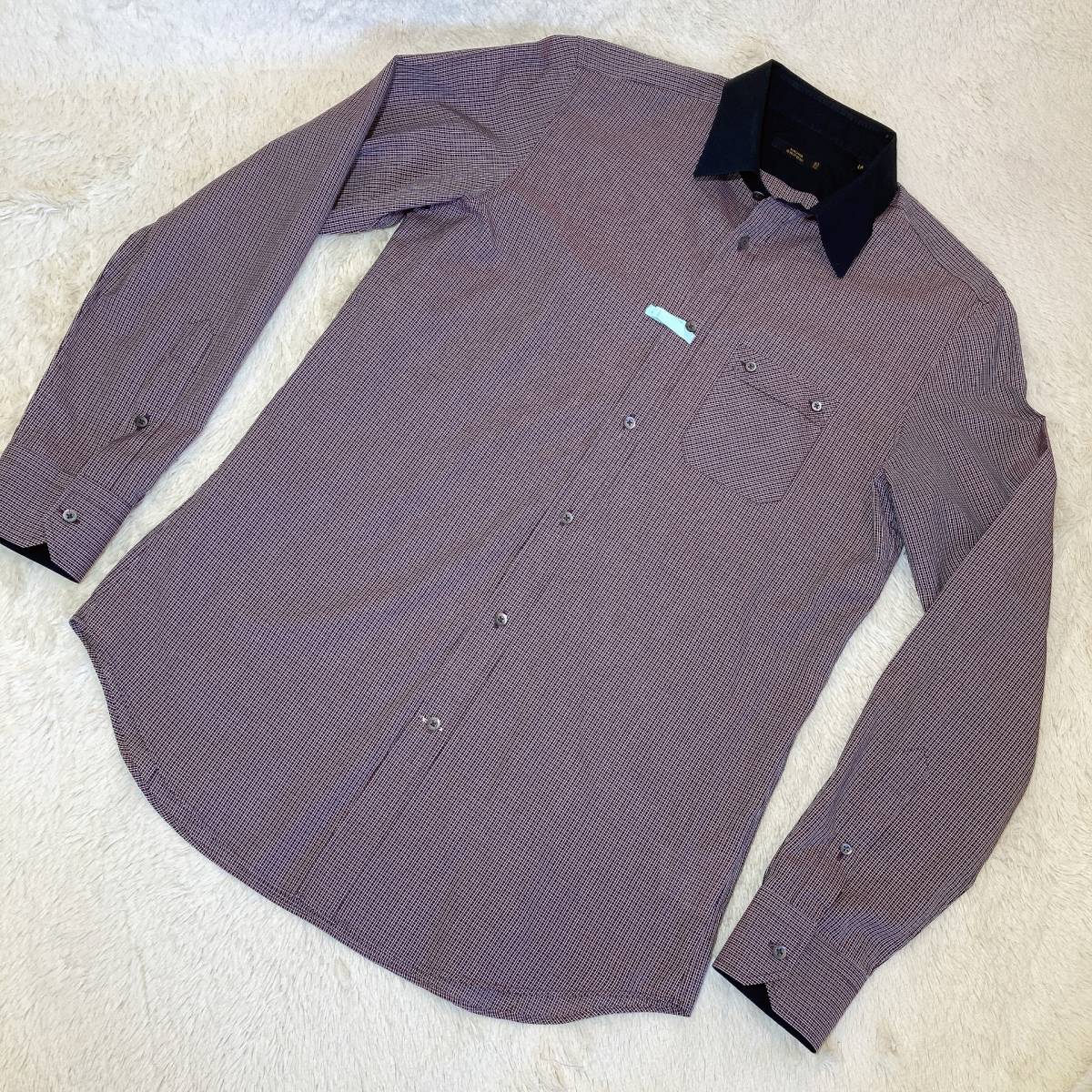| W643美品!■MAURO GRIFONIマウログリフォーニ★伊製★チェック&黒襟★デザインシャツ■16 | |||||||||||