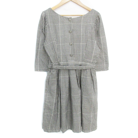 【仕様】裏地 あり 透け感 なし 後ろ身頃 ボタン リングベルト付き 柄 グレンチェック柄 モノトーン