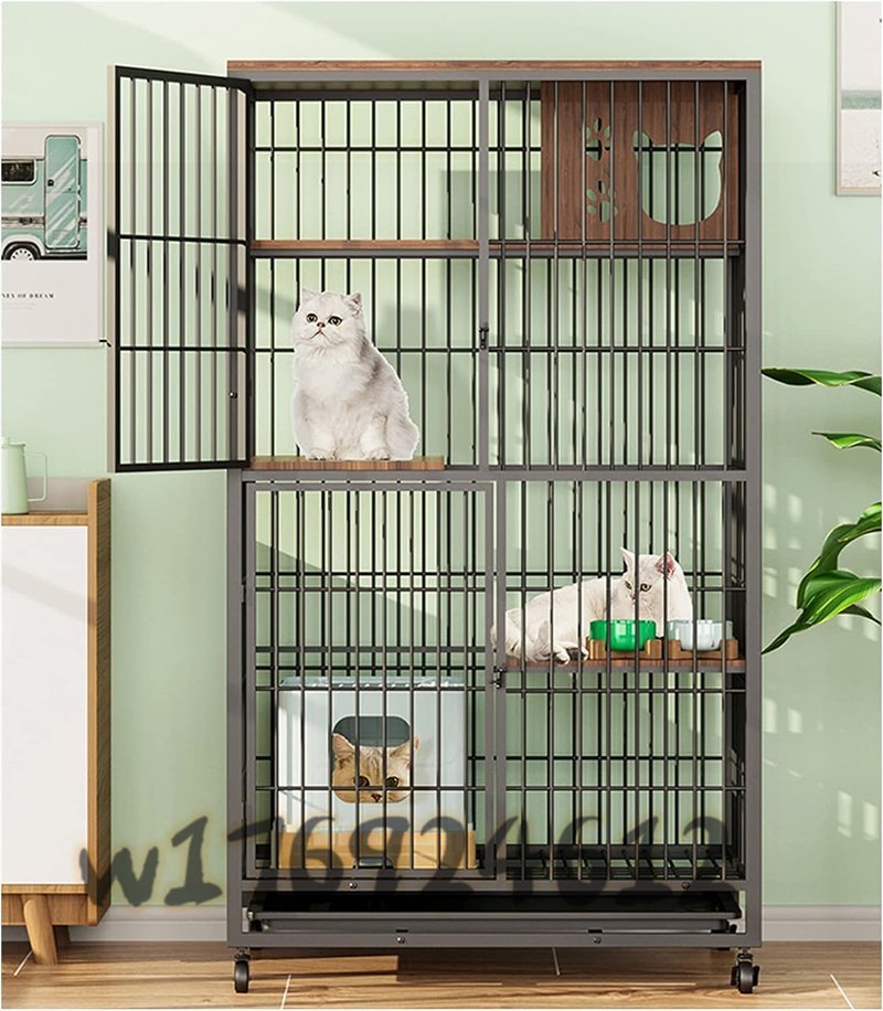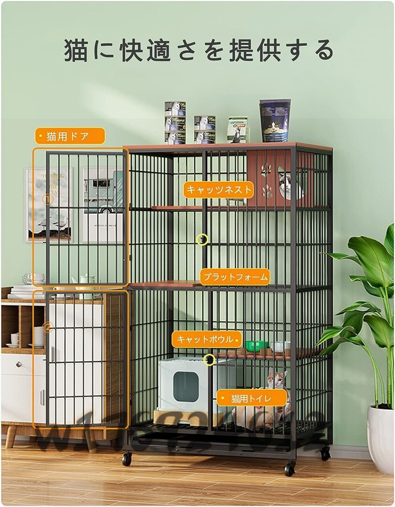 とても丈夫なキャットケージ:キャットケージの主構造は、厚みを増した細鉄でできており、変形することはありません。 ケージの台と屋根は無垢材でできており、室内で長く使用することができます。 ケージの上部は猫用品を収納する台として使用でき、使い勝手が良い。