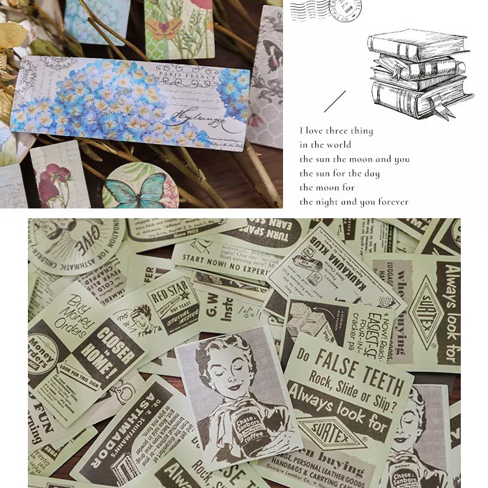 100枚 シール アメリカン おしゃれ アンティーク ビンテージ デコステッカー アンティーク調 コラージュ レトロ 1070-4