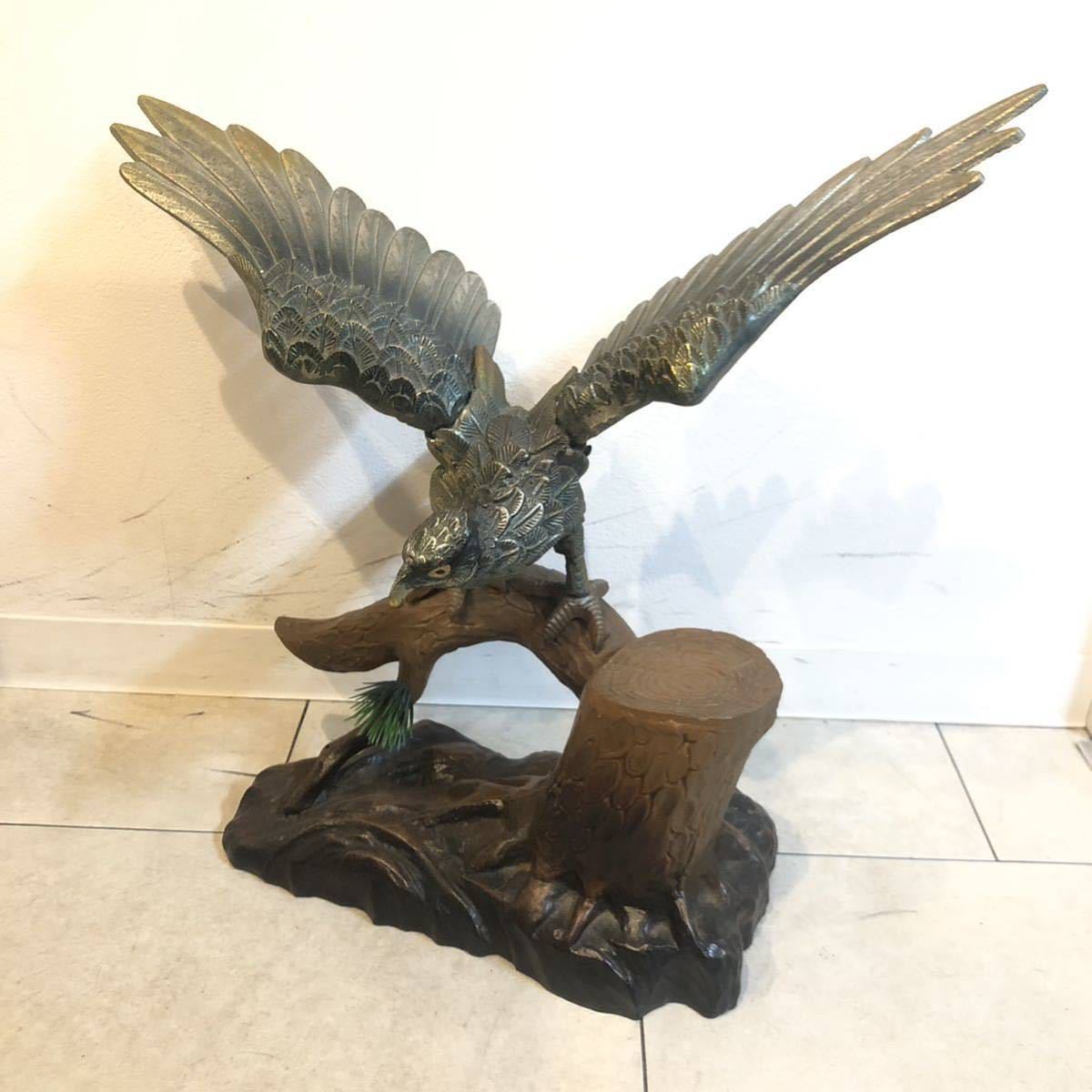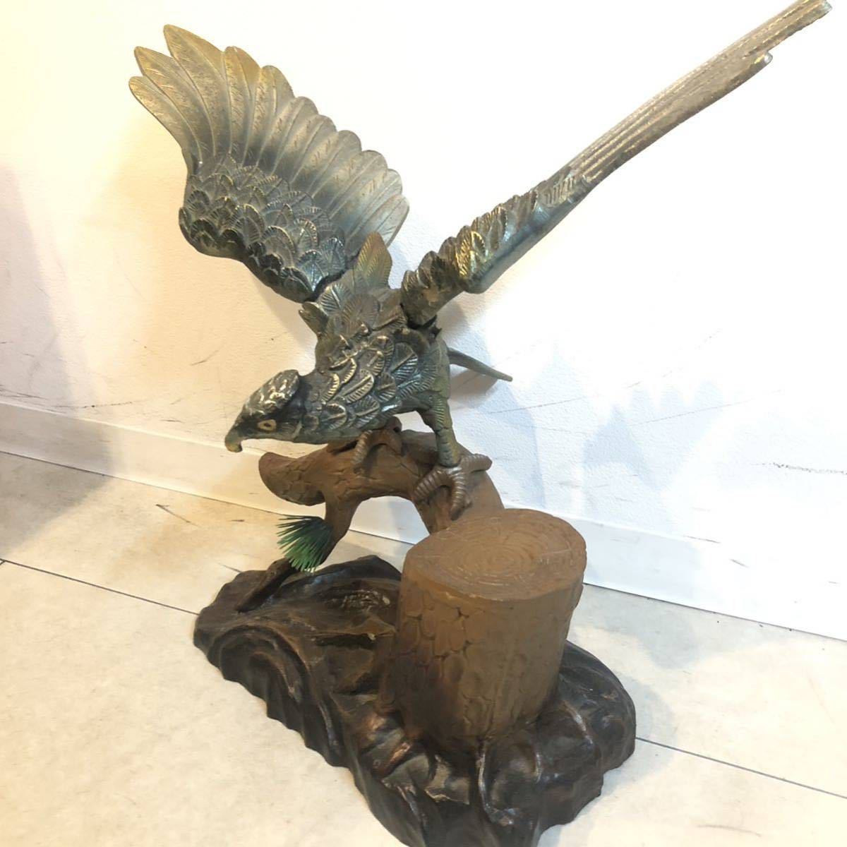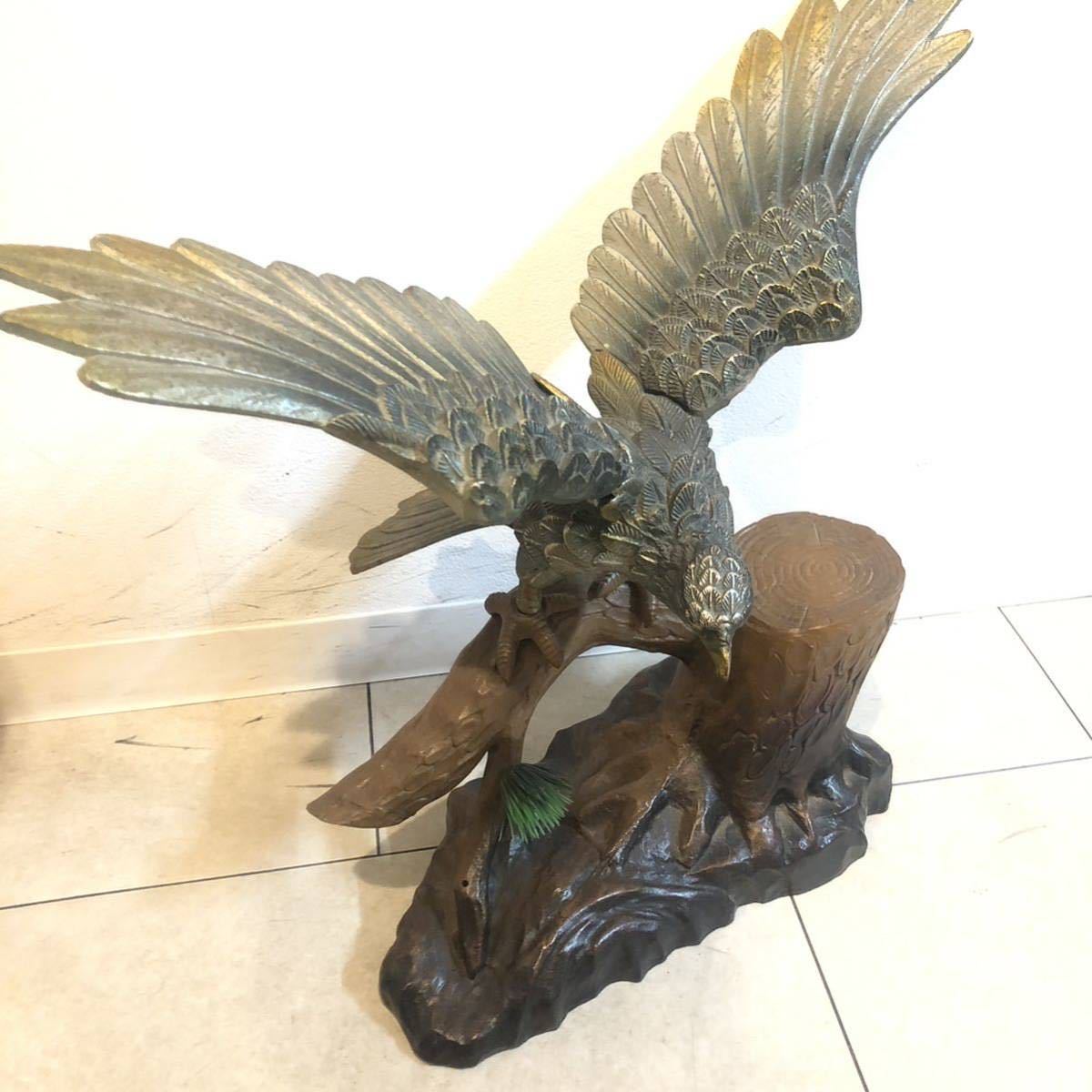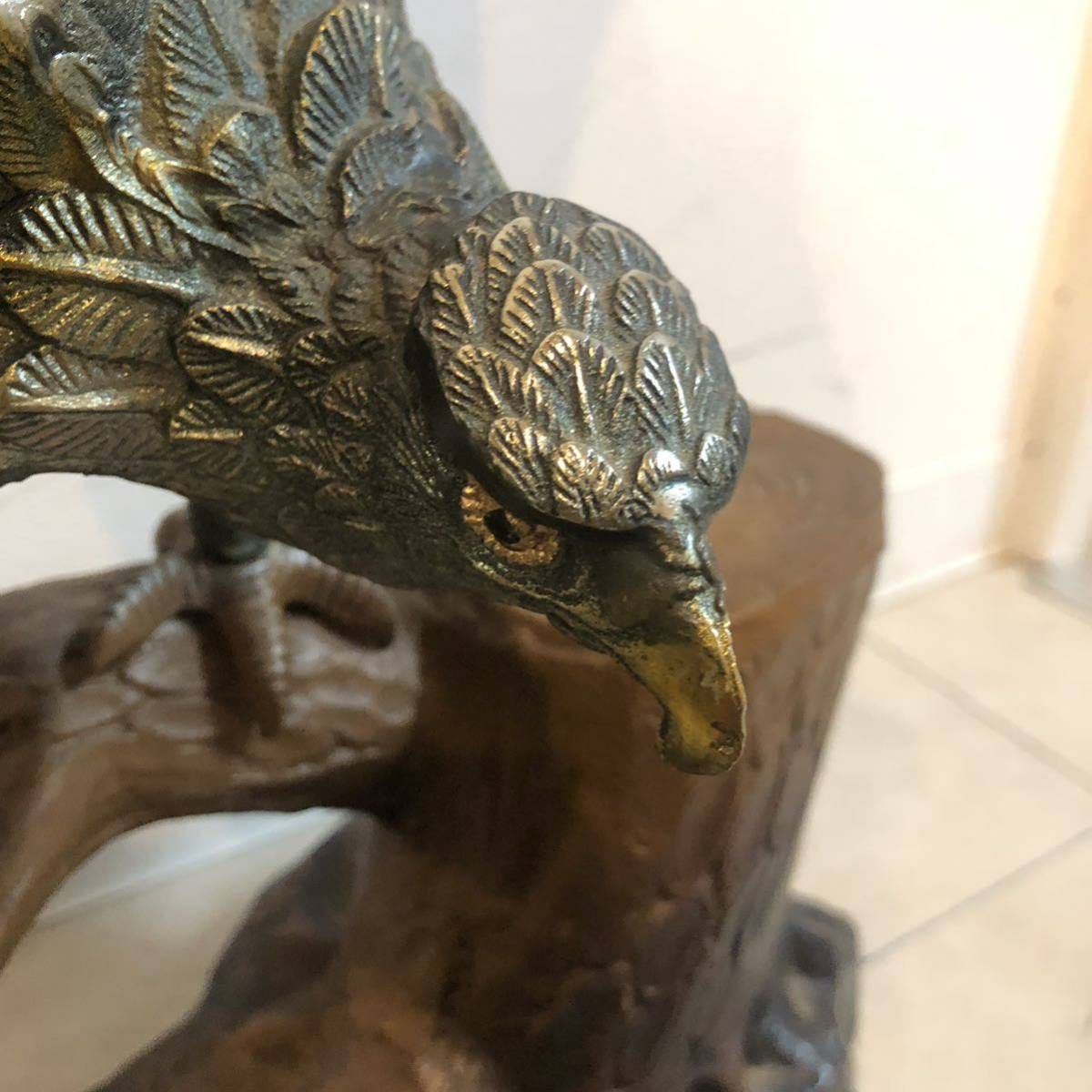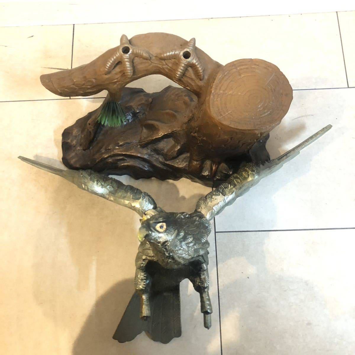 ・品名:鷹 金属工芸 置物 金属製 アンティーク 鳥 オブジェ 骨董品 インテリア 左羽根緩い 右足付け根折れKN-5LFF