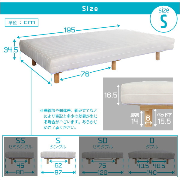 | 商品説明 | 商品名:脚付きロールマットレス ユニテ・ライド ネイビー色 シングルサイズ 商品サイズ:(約)幅97x奥行195x高さ34.5cm 商品重量:25.3kg 梱包サイズ:(約)幅102×奥行35×高さ33cm 梱包重量:27.0kg 素材 張り材:ポリエステル100% クッション材:ボンネルコイル、ウレタン、フェルト、不織布 本体:LVL、パイン(脚) 耐荷重140kg お客様組立商品 商品画像は、デジタルカメラで撮影しておりますので、 お客様のPCモニターやインターネット環境の違いにより、 多少色合いが違って見えることが御座います。 予めご了承下さい。 |