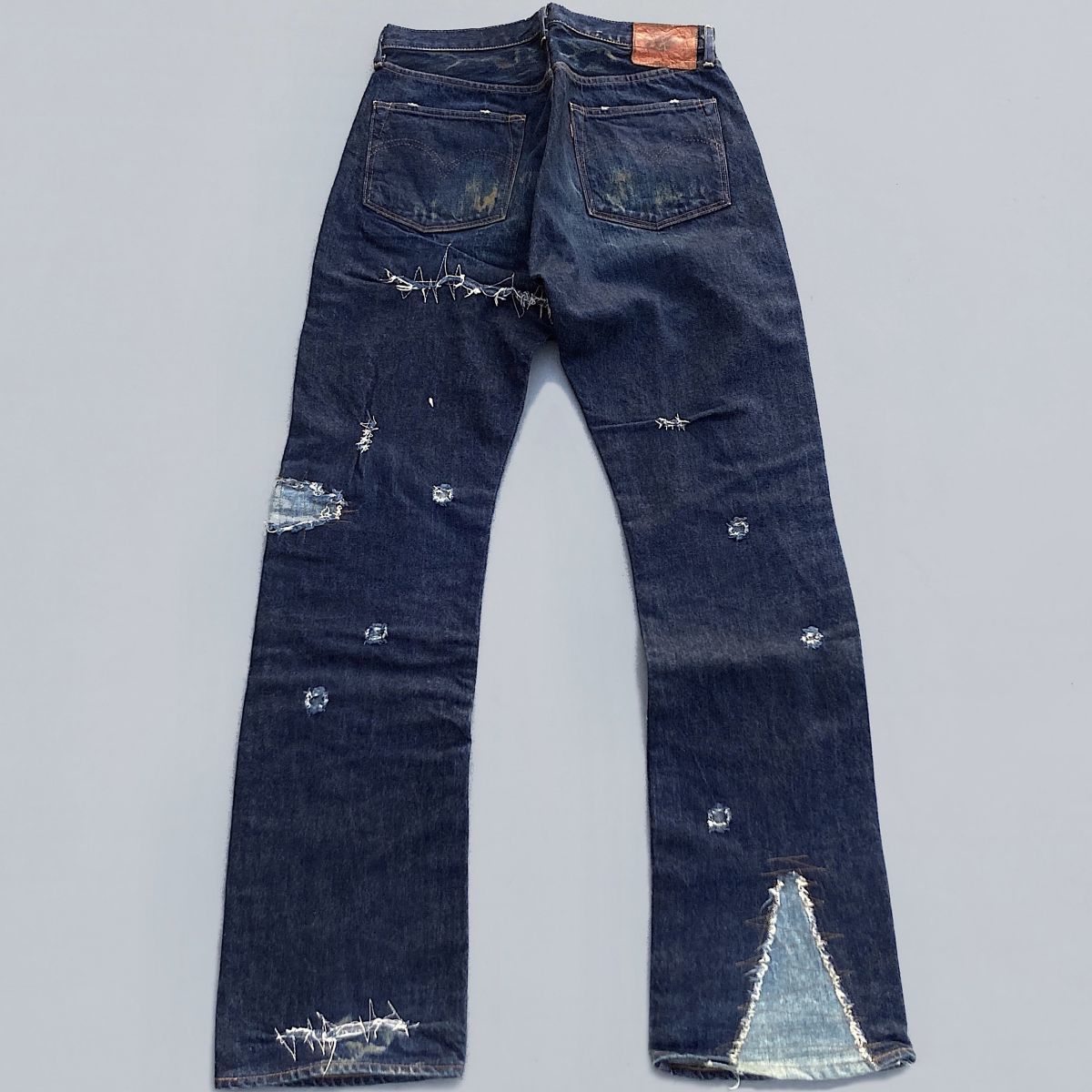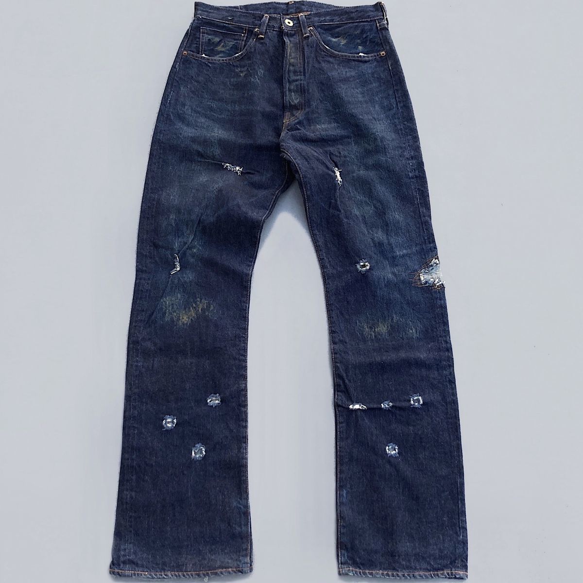 第二次世界大戦の最中に被弾しつつ生還した人物のジーンズというコンセプトです。