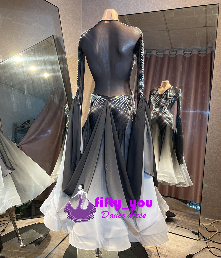 新品fifty_you レディース社交ダンス衣装 ハイクオリティ魅力サイズセミオーダードレス 競技デモ用ダンスドレス グラデーション系 ストーン