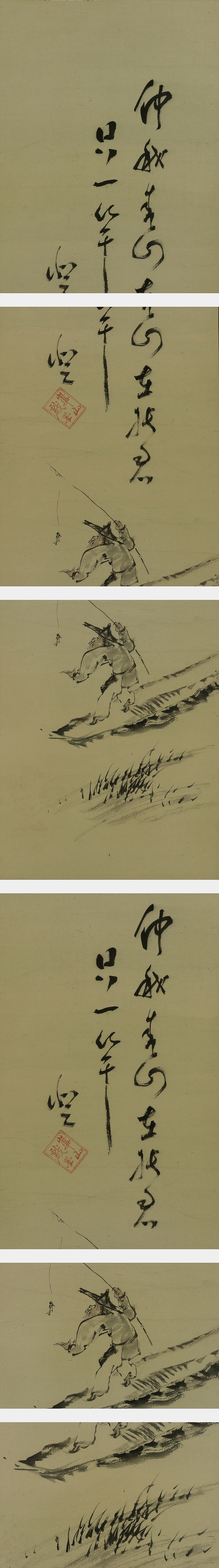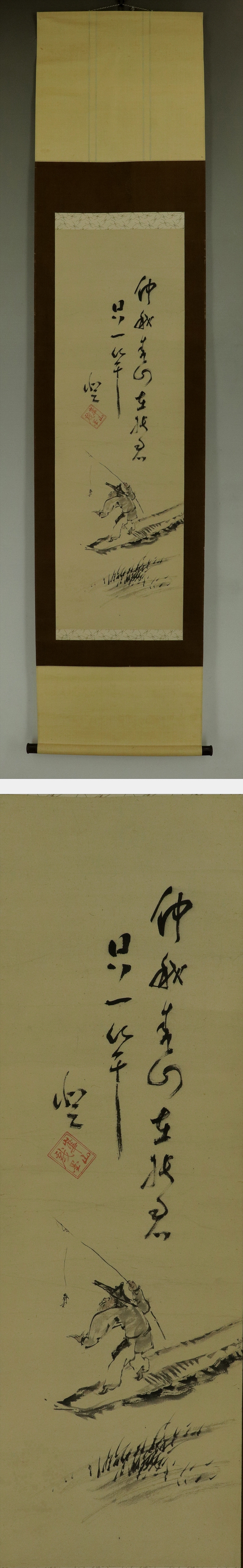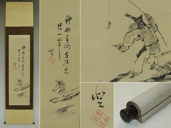 | №2304076【真作】渡辺華山【韓人釣魚図】◆紙本◆識箱◆掛軸 | |