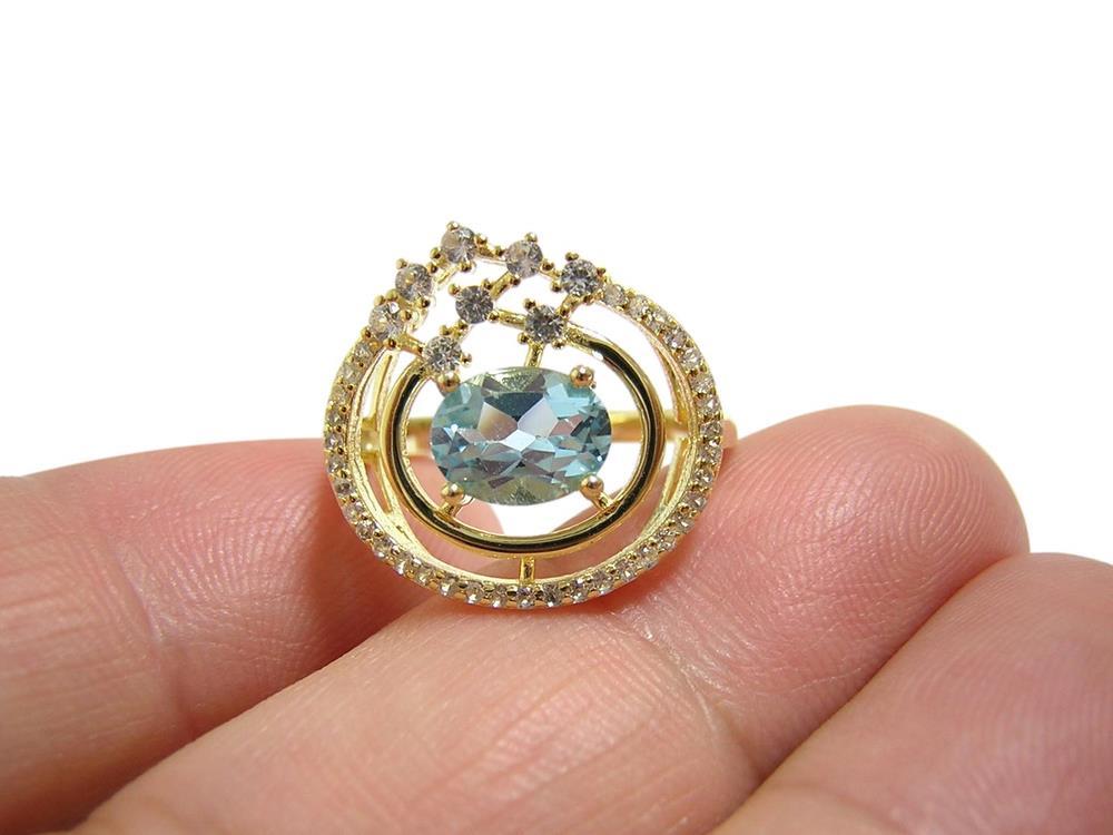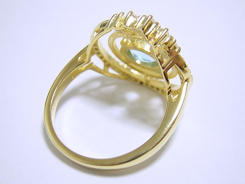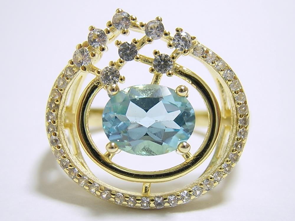 天然ブルートパーズとキュービックジルコニアを使用したデザインリングです。