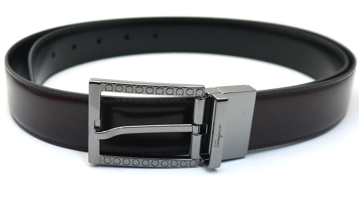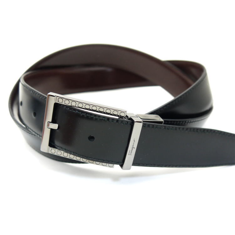 ■品番:67-0081 0759020■サイズ:ウエスト110cmまで対応(全長約115cm)/幅3.2センチ程度/バックル8x4.3センチ程度■カラー:ダークブラウン×ブラック革/ガンメタ金具■素材:カーフ■仕様:回転式リバーシブルタイプ/フリーサイズ(根元をはずしてカットできます)■付属品:保存袋、純正化粧箱■イタリア製【参考価格】 64,900円(税込)