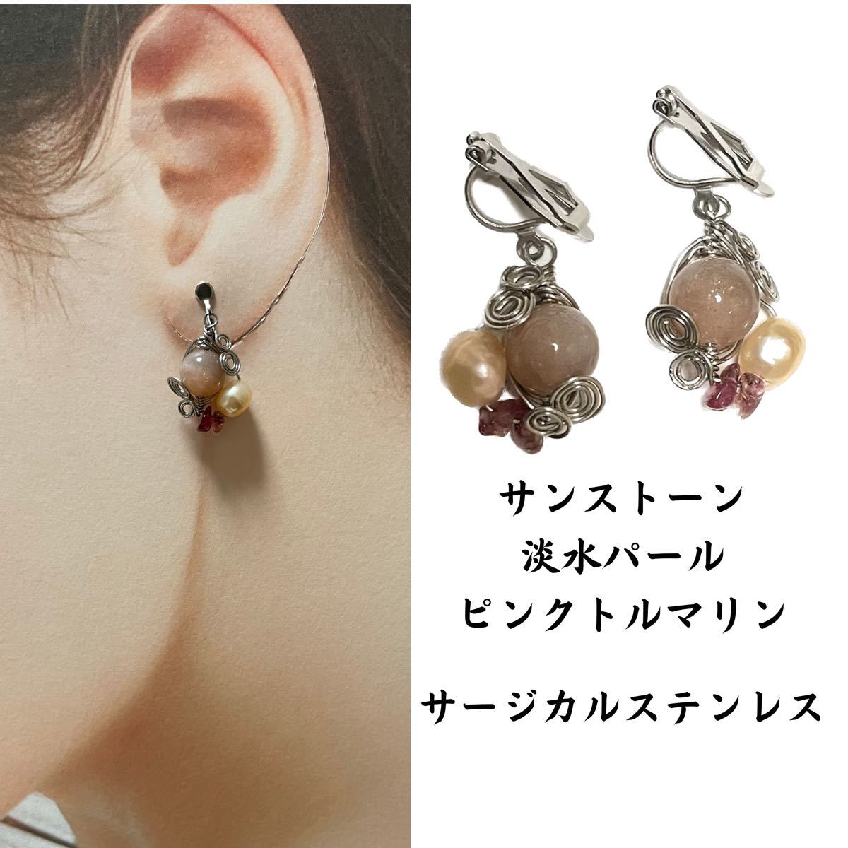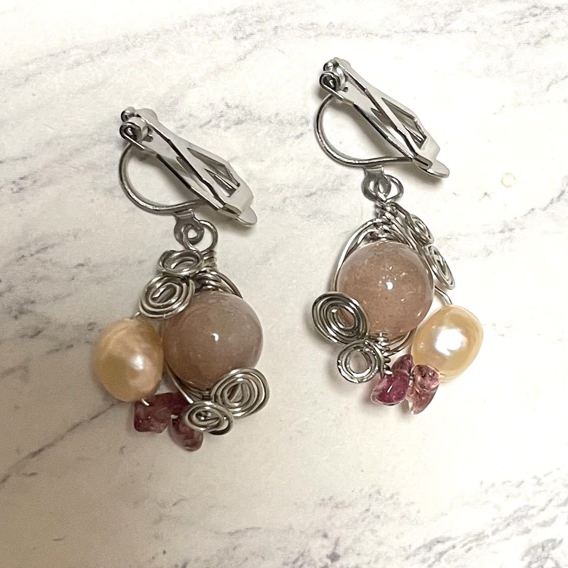 ハンドメイド、オリジナルデザインの天然石イヤリングです。